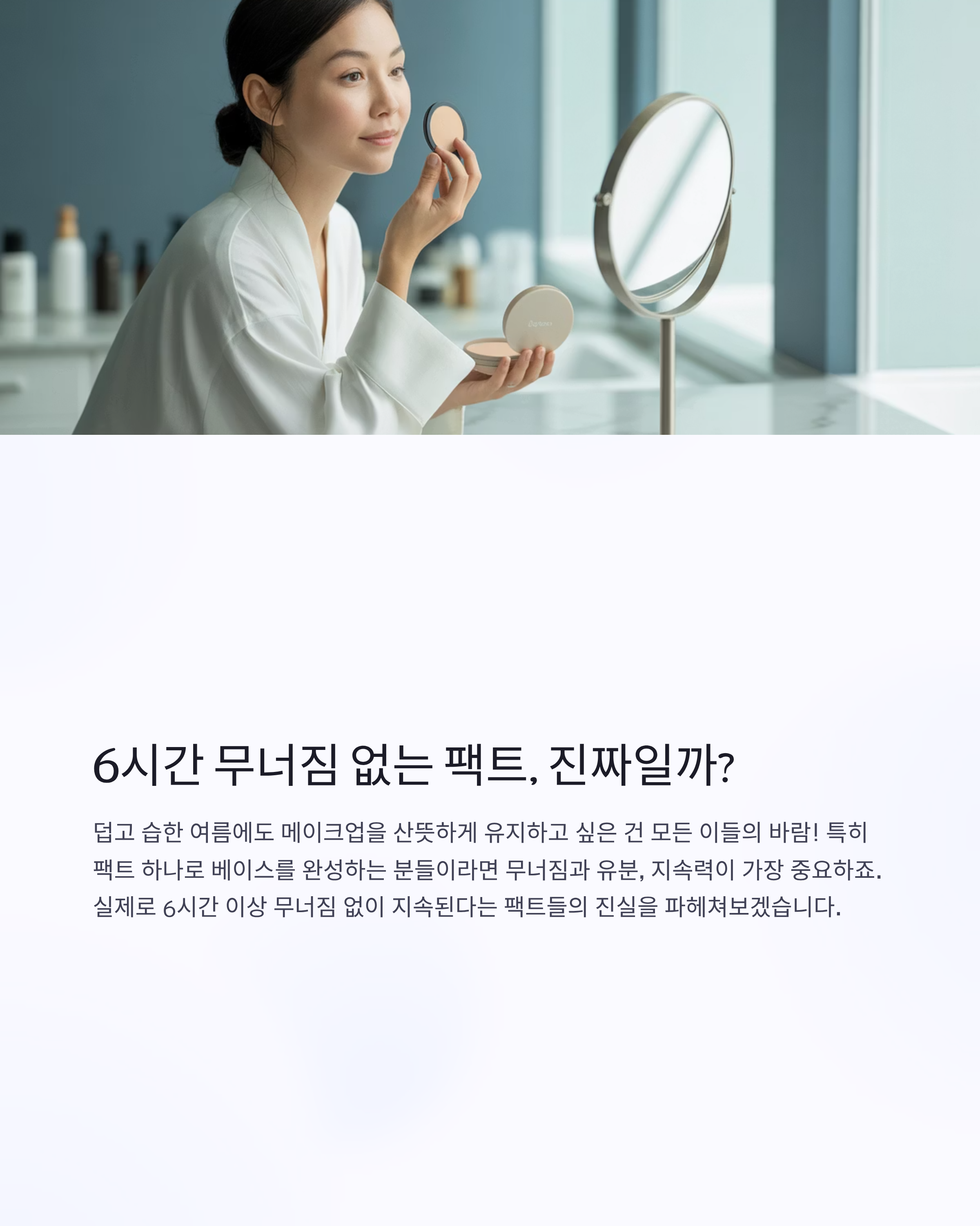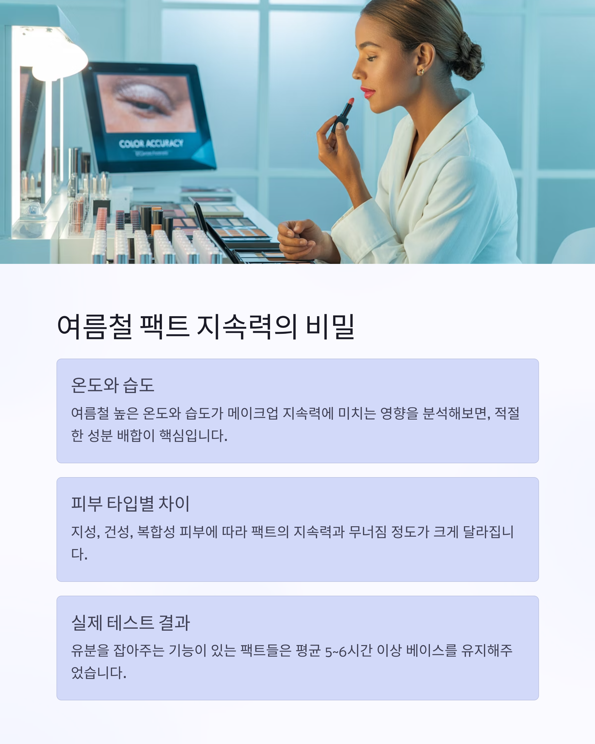 팩트의 지속력은 온도, 습도, 피부 타입에 따라 크게 좌우되죠. 특히 여름엔 땀과 피지 때문에 무너짐이 심해지는 만큼, '지속력'을 제대로 검증해볼 시기입니다.