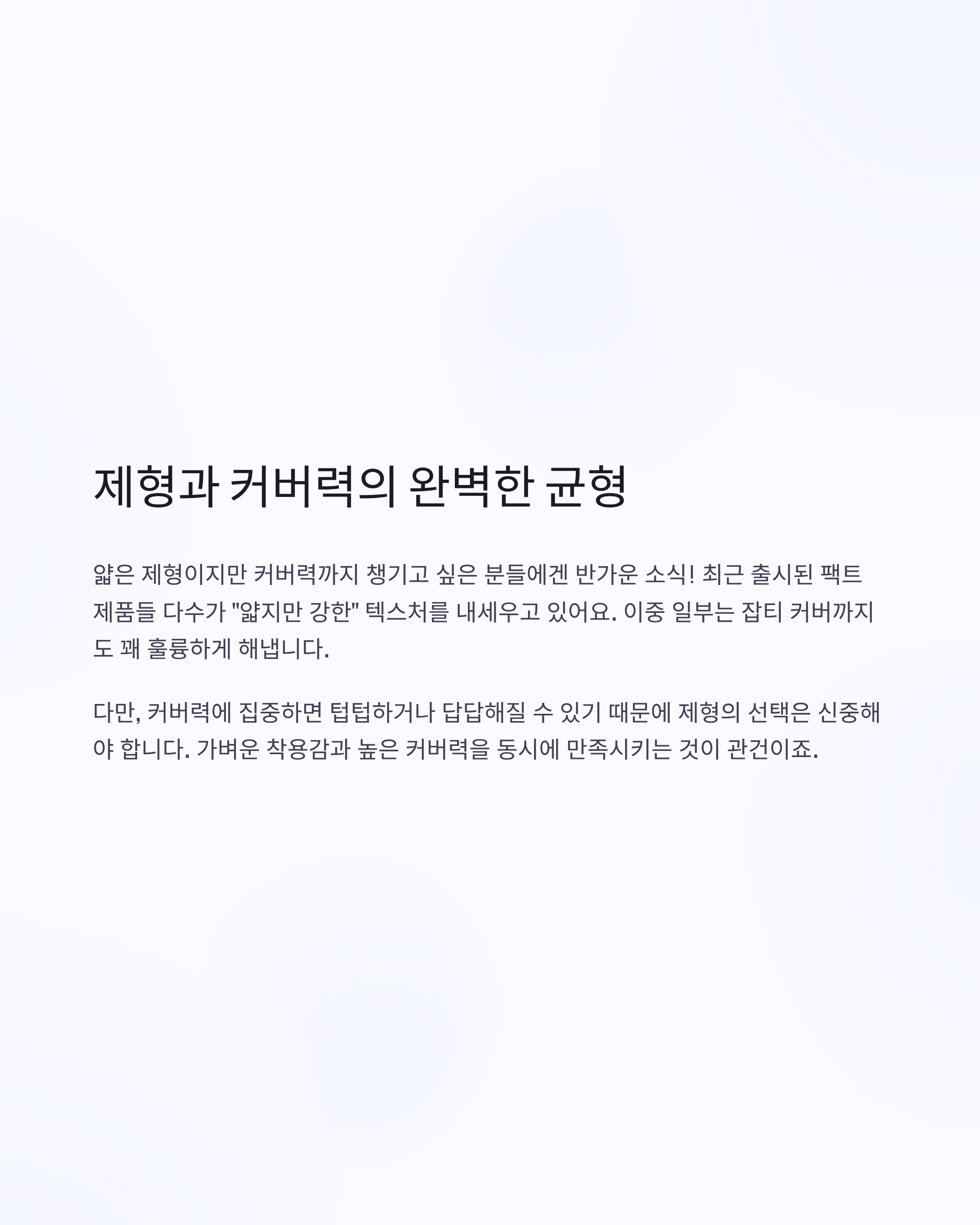 다만, 커버력에 집중하면 텁텁하거나 답답해질 수 있기 때문에 제형의 선택은 신중해야 해요.