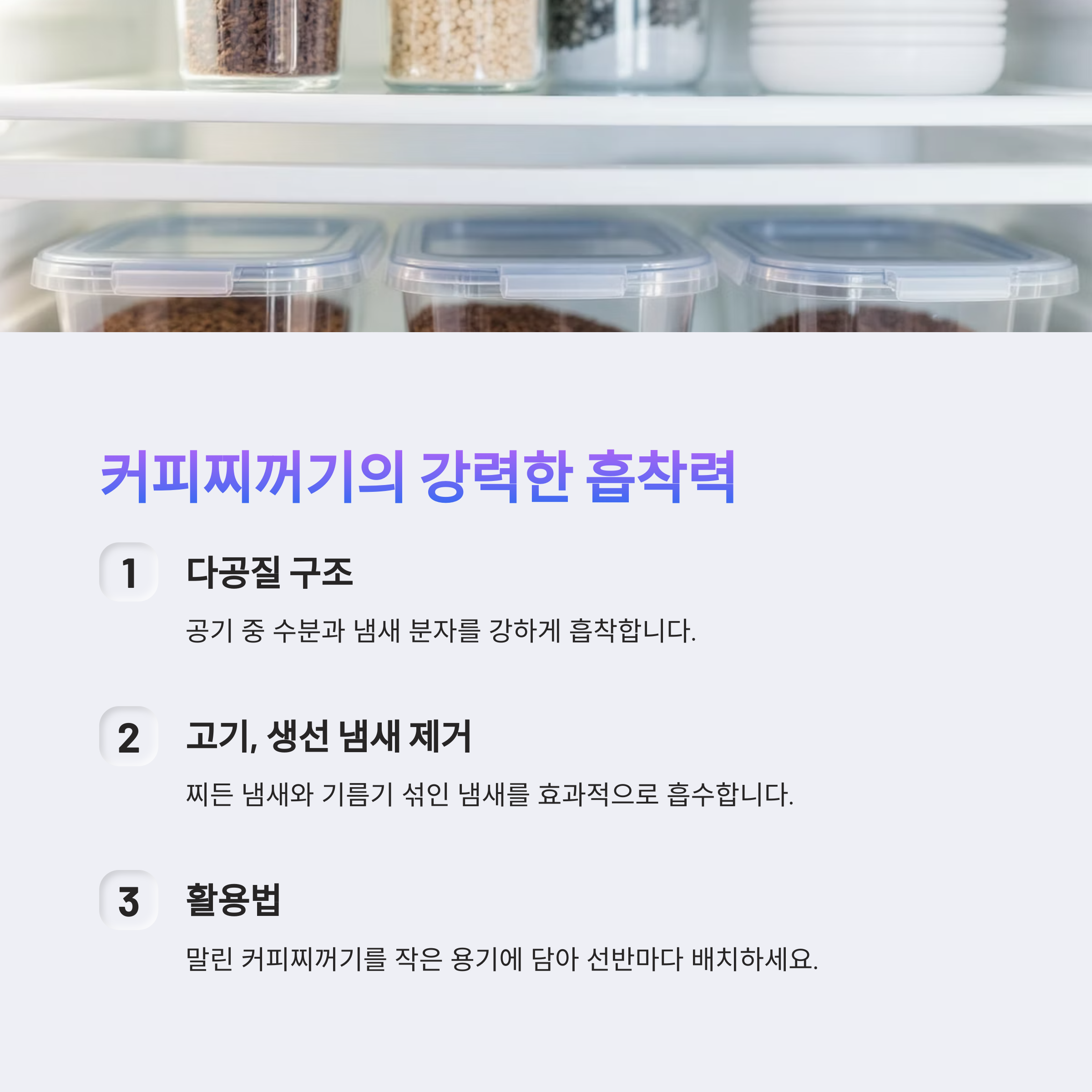 | 고기/생선 냄새 | 커피찌꺼기 | 강한 냄새 흡착력 |