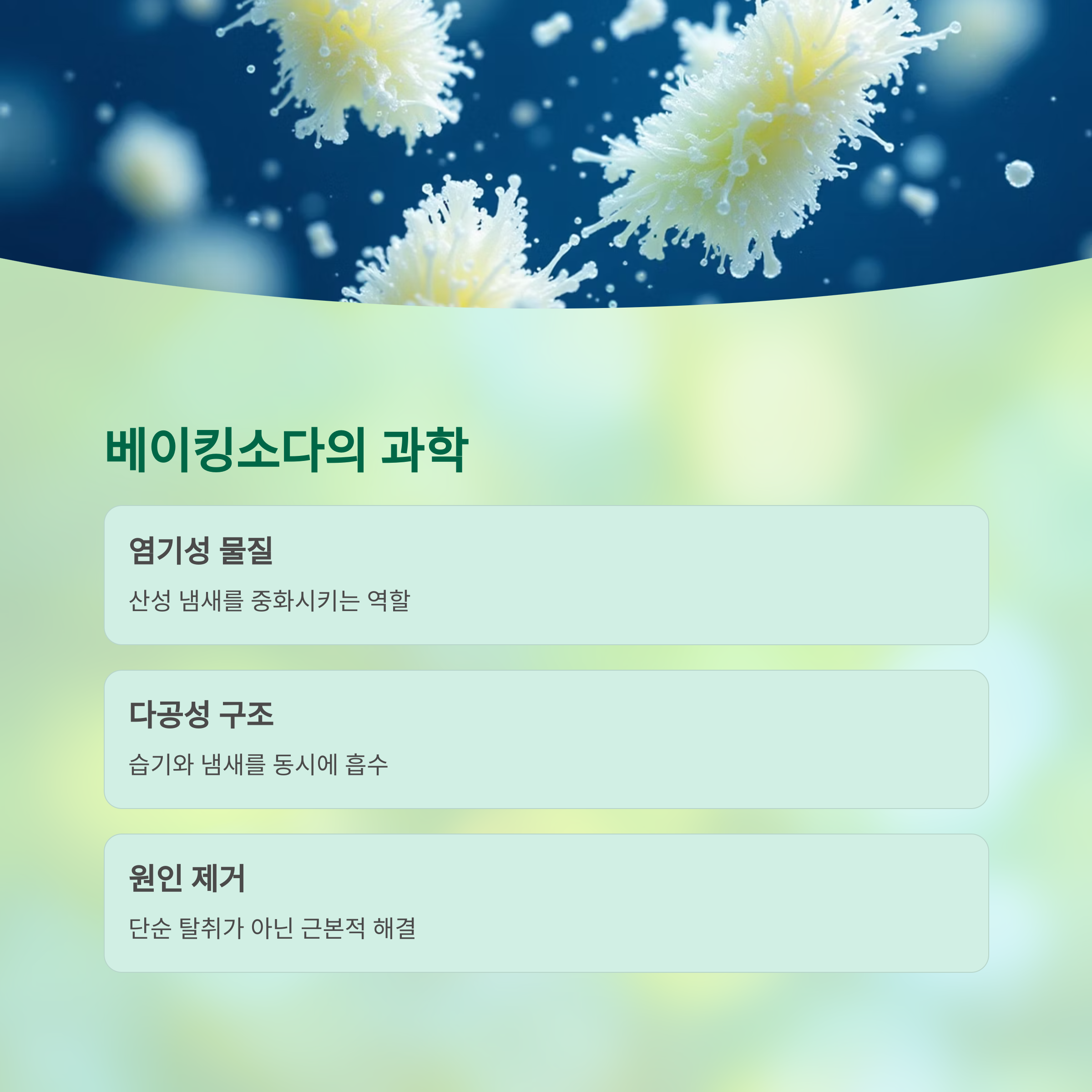 중요: 베이킹소다는 단순 탈취제가 아닌 냄새 원인을 제거하는 소재입니다.