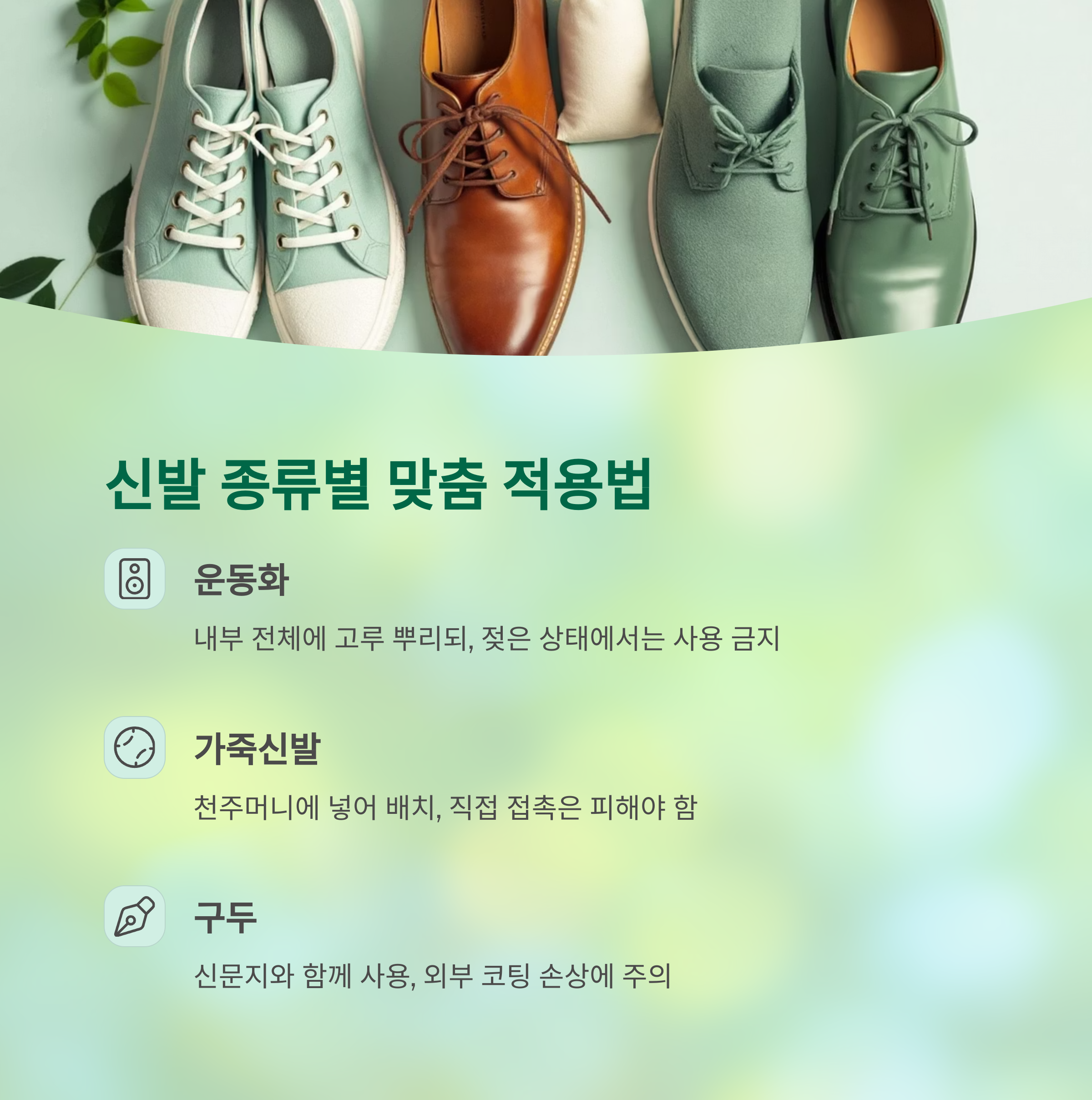 신발 종류 적용 방법 주의사항