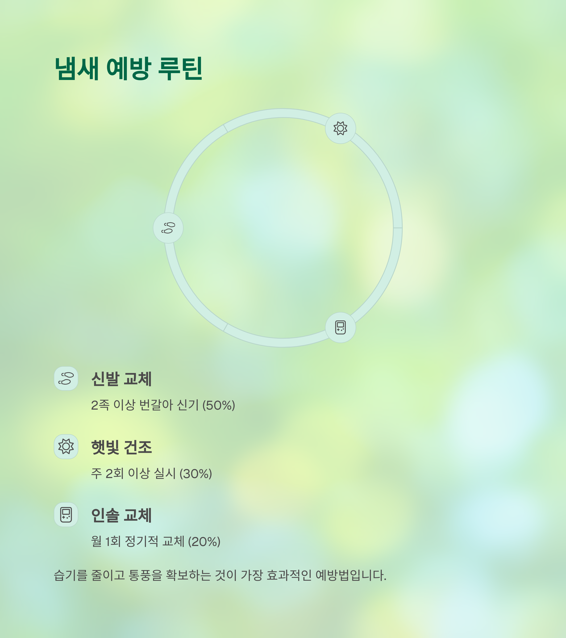 | 신발 2족 이상 번갈아 신기 | 매일 | 50% |