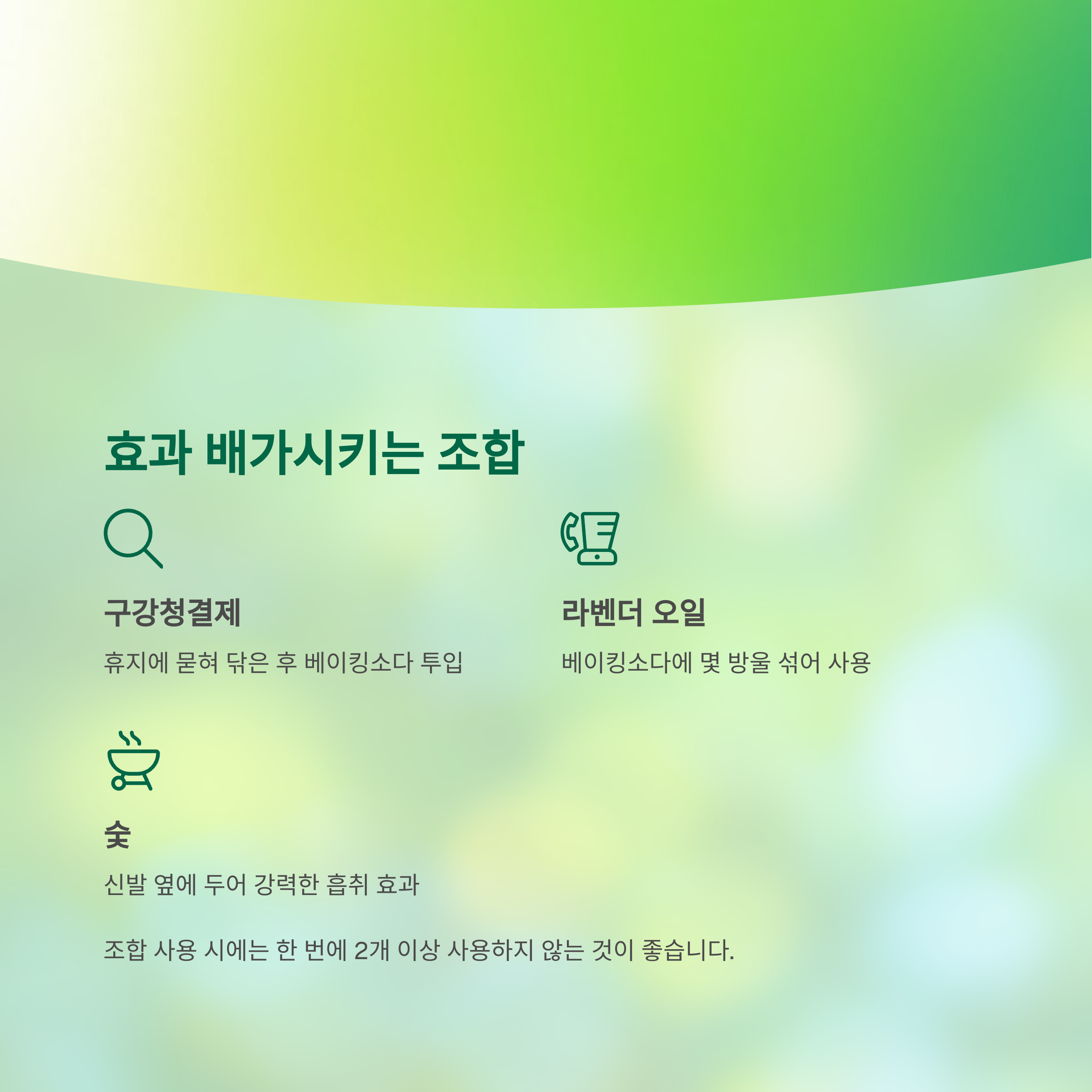 냄새 제거력을 배가시키는 조합을 소개합니다.