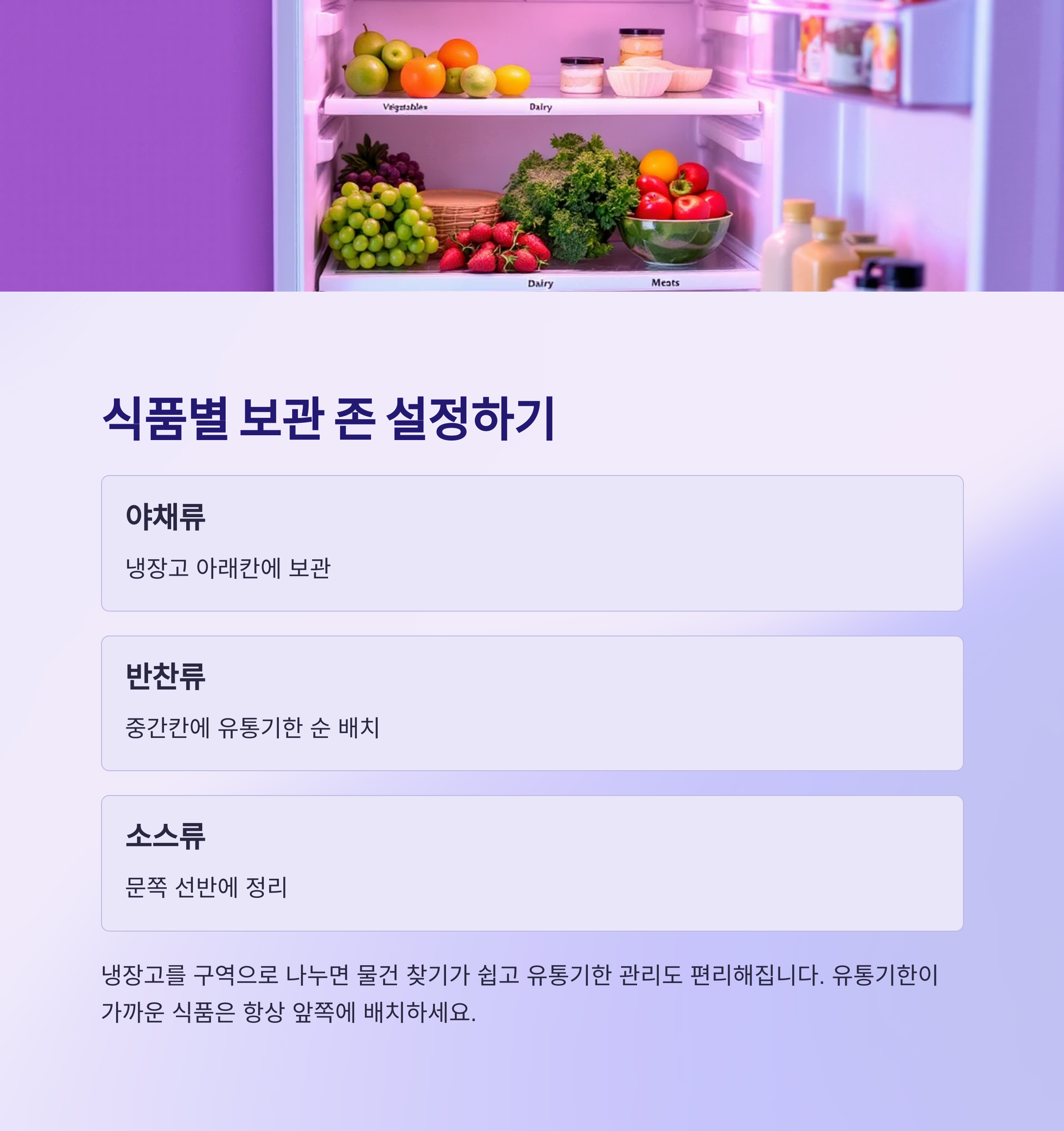 식품별 보관 존 설정으로 한눈에 보기 쉽게