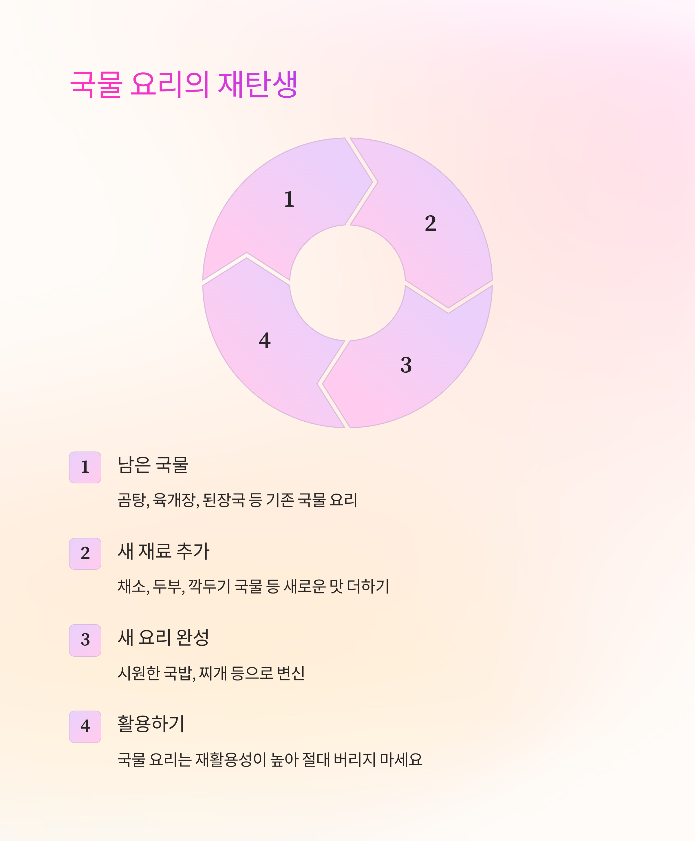 | 국물 | 국밥, 찌개 | 재활용성 매우 높음 |