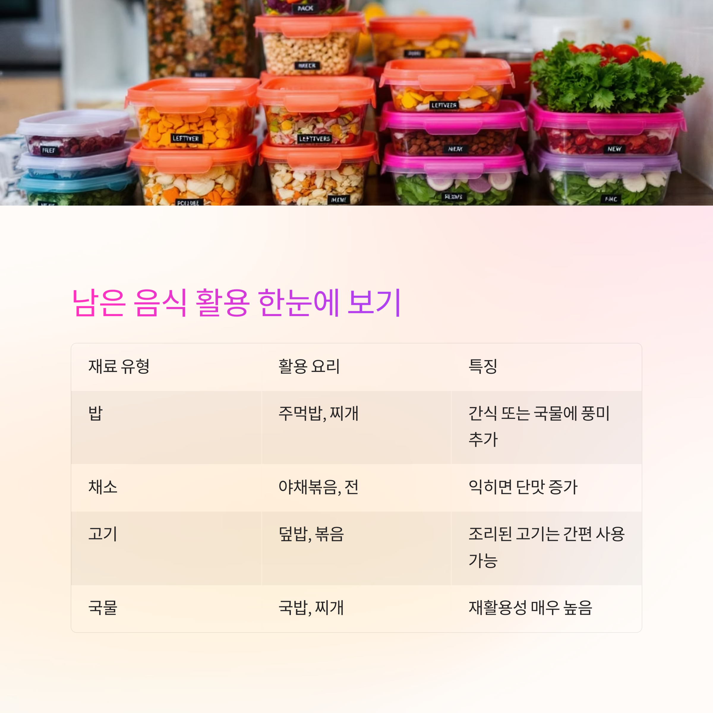 남은 음식 활용 팁을 쉽게 정리한 표