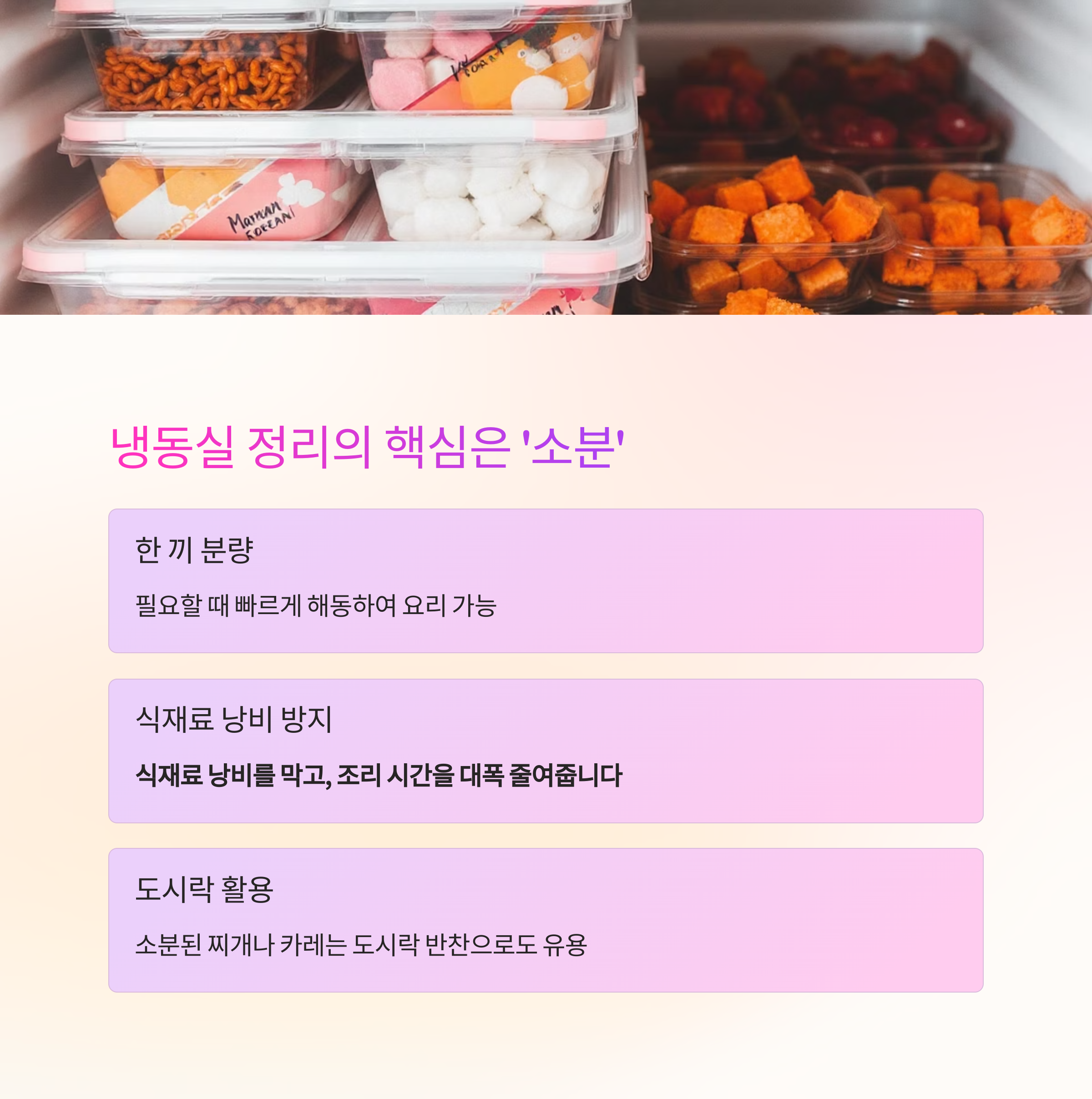 냉동실 정리는 '1인분' 기준으로 소분이 핵심