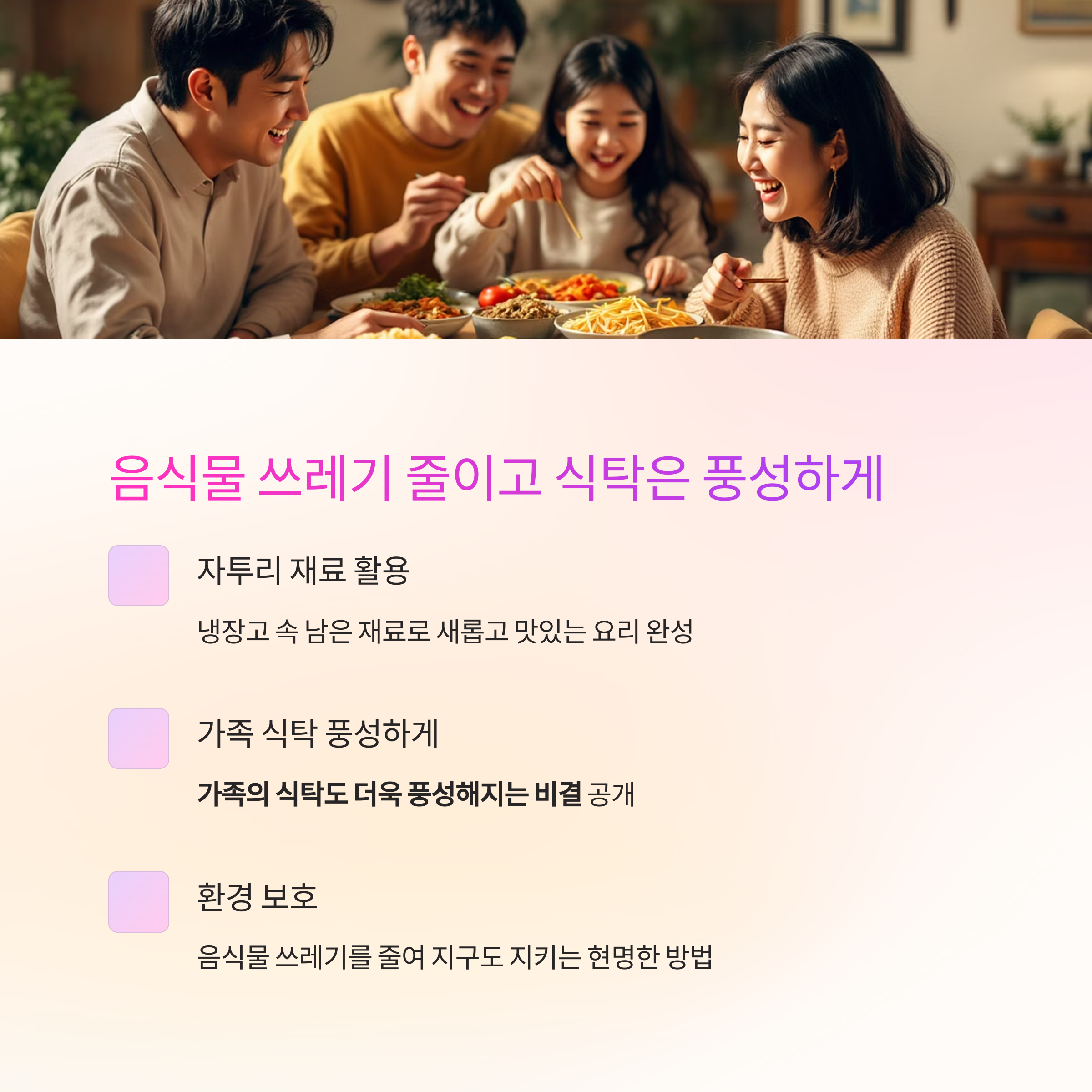 음식물 쓰레기를 줄이고, 가족의 식탁도 더욱 풍성해지는 비결을 지금 공개합니다.