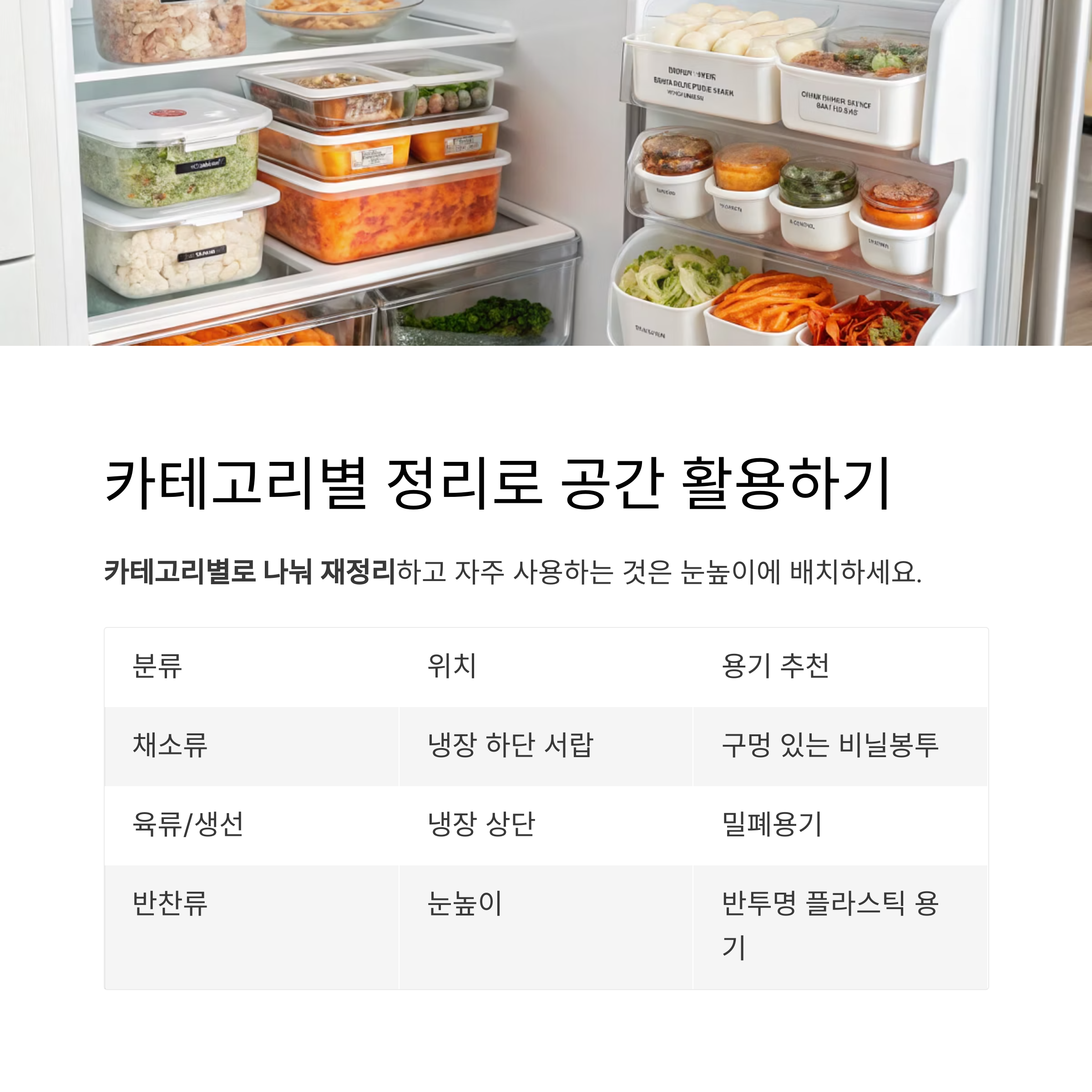 식재료를 꺼낸 후에는 카테고리별로 나눠 재정리하세요.