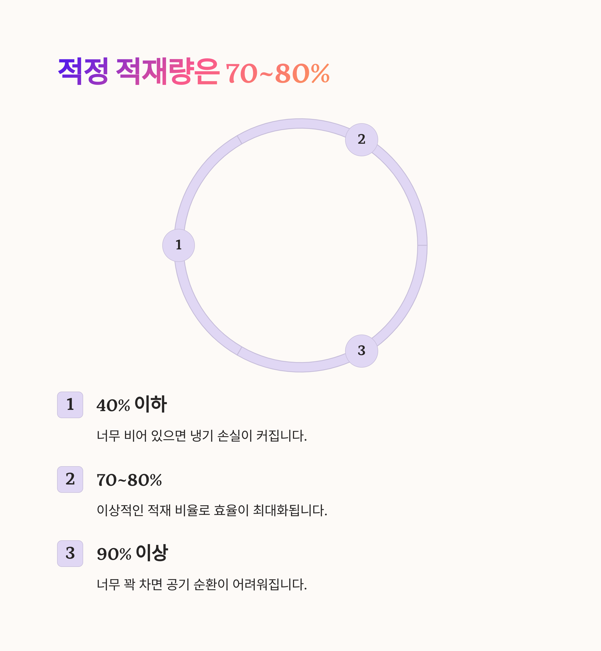 | 40% 이하 | 냉기 손실 증가 |