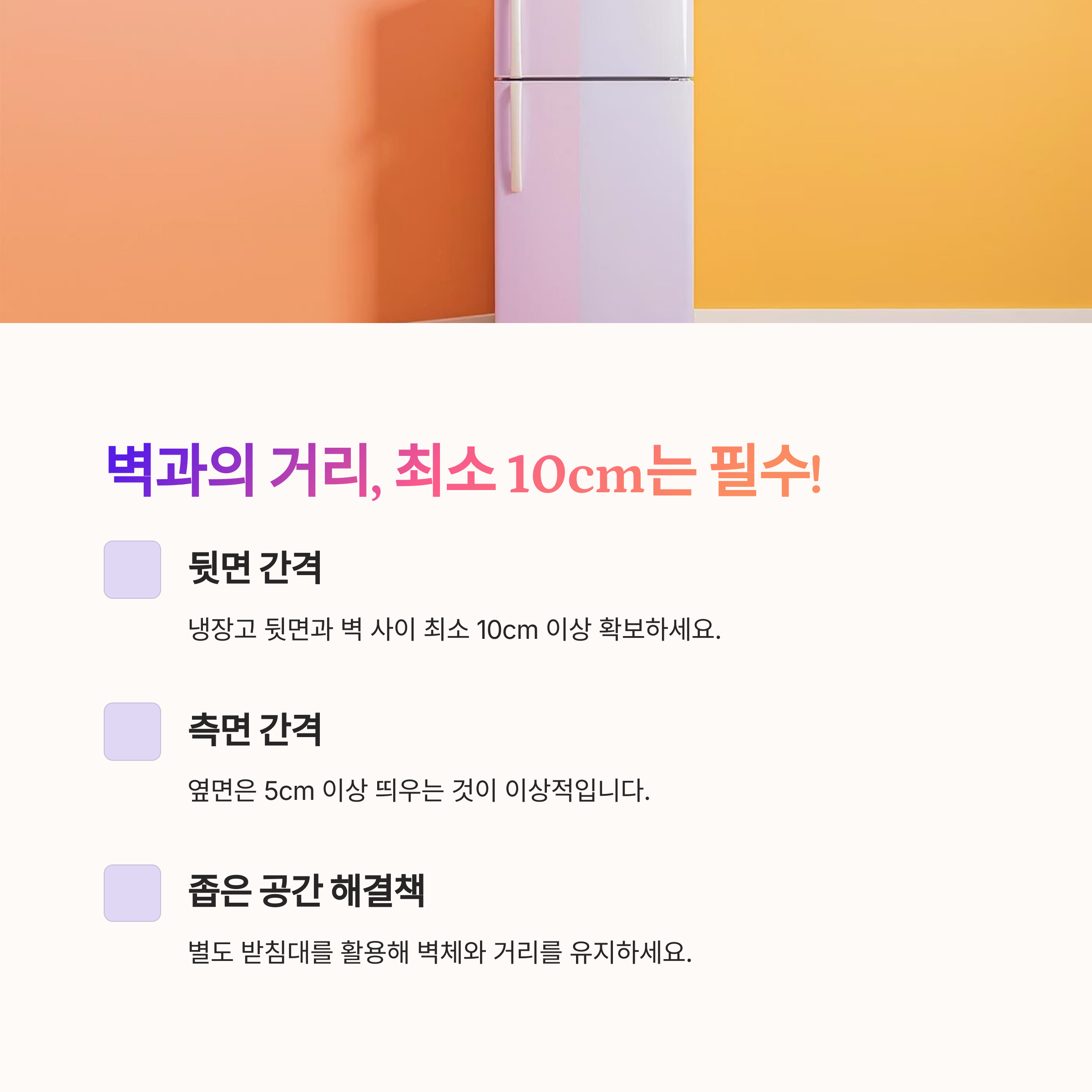 냉장고 주변, 통풍이 잘 돼야 합니다