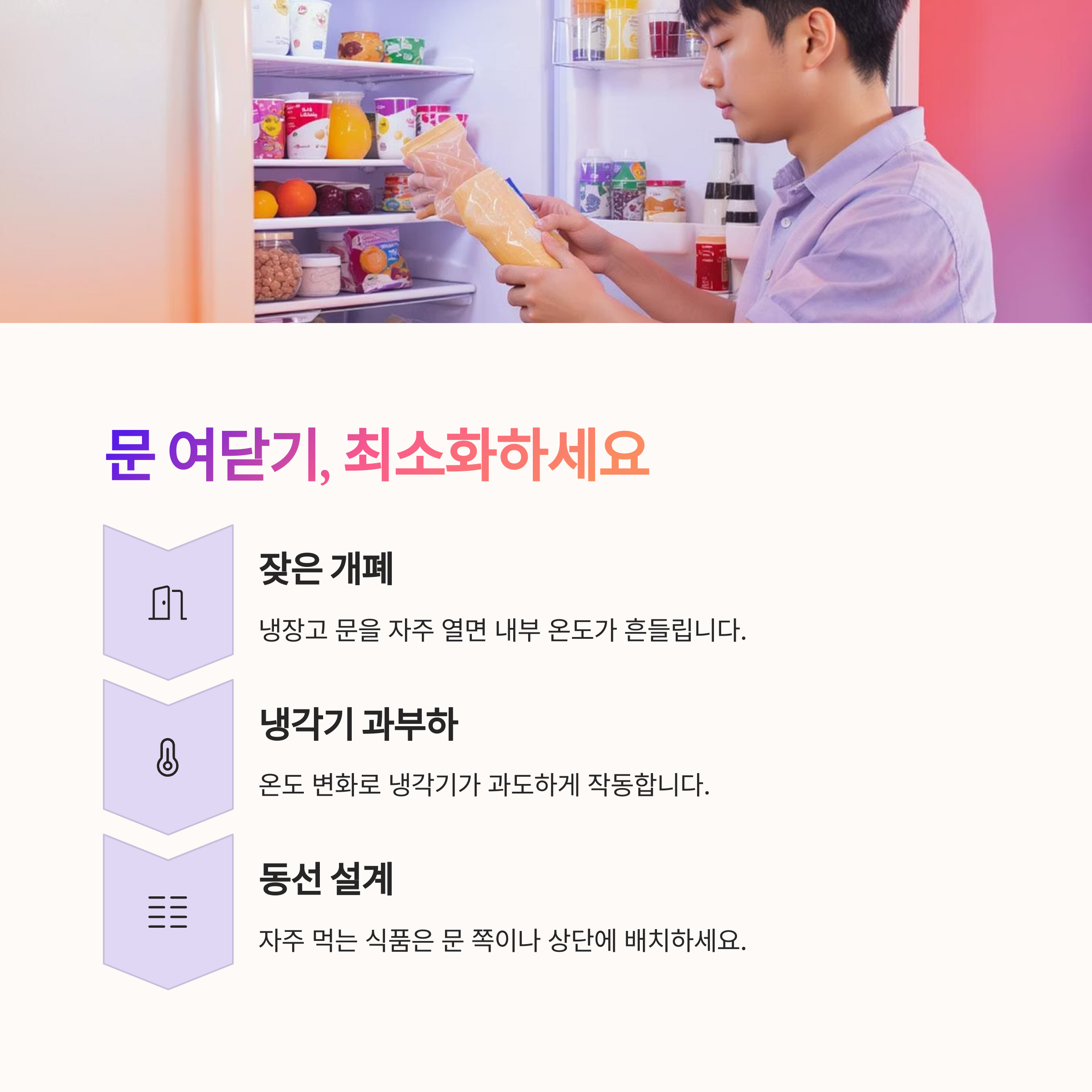 냉장고 문을 자주 여닫으면 내부 온도가 흔들리면서