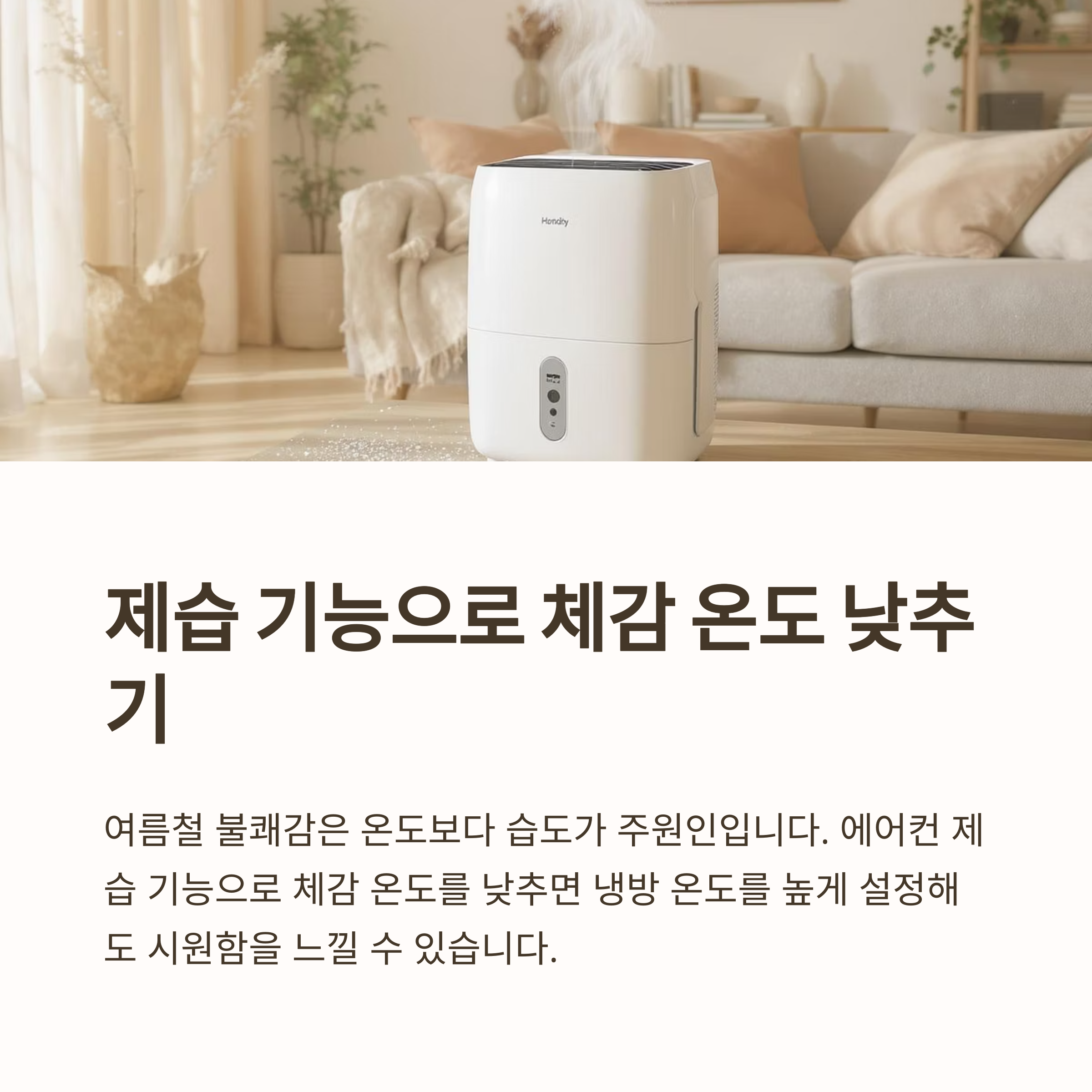 습도 조절만 잘해도 냉방 효과는 배가되고 전기 사용량은 줄어듭니다.