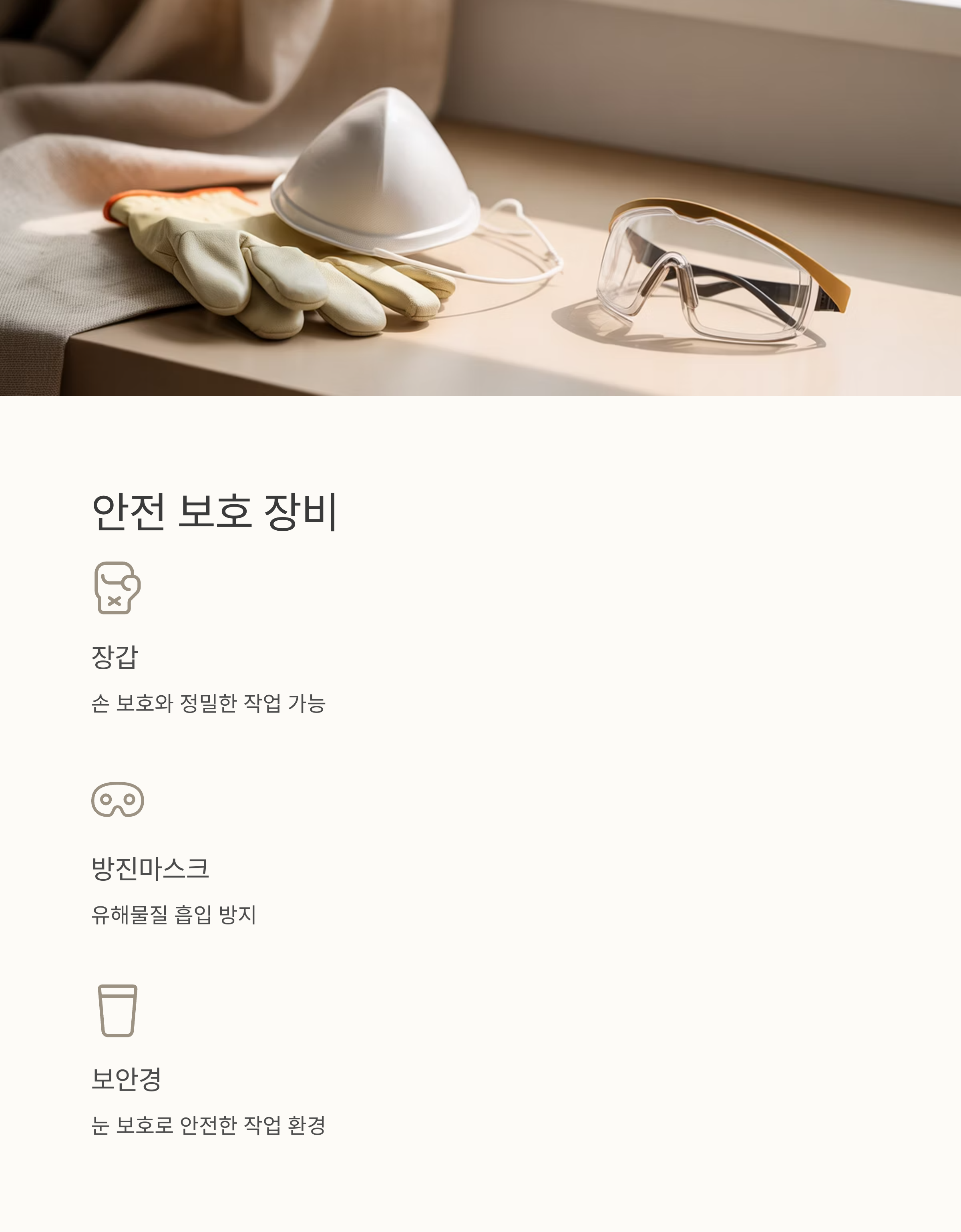 보호 장비입니다. 자칫 부상이나 유해물질 흡입을