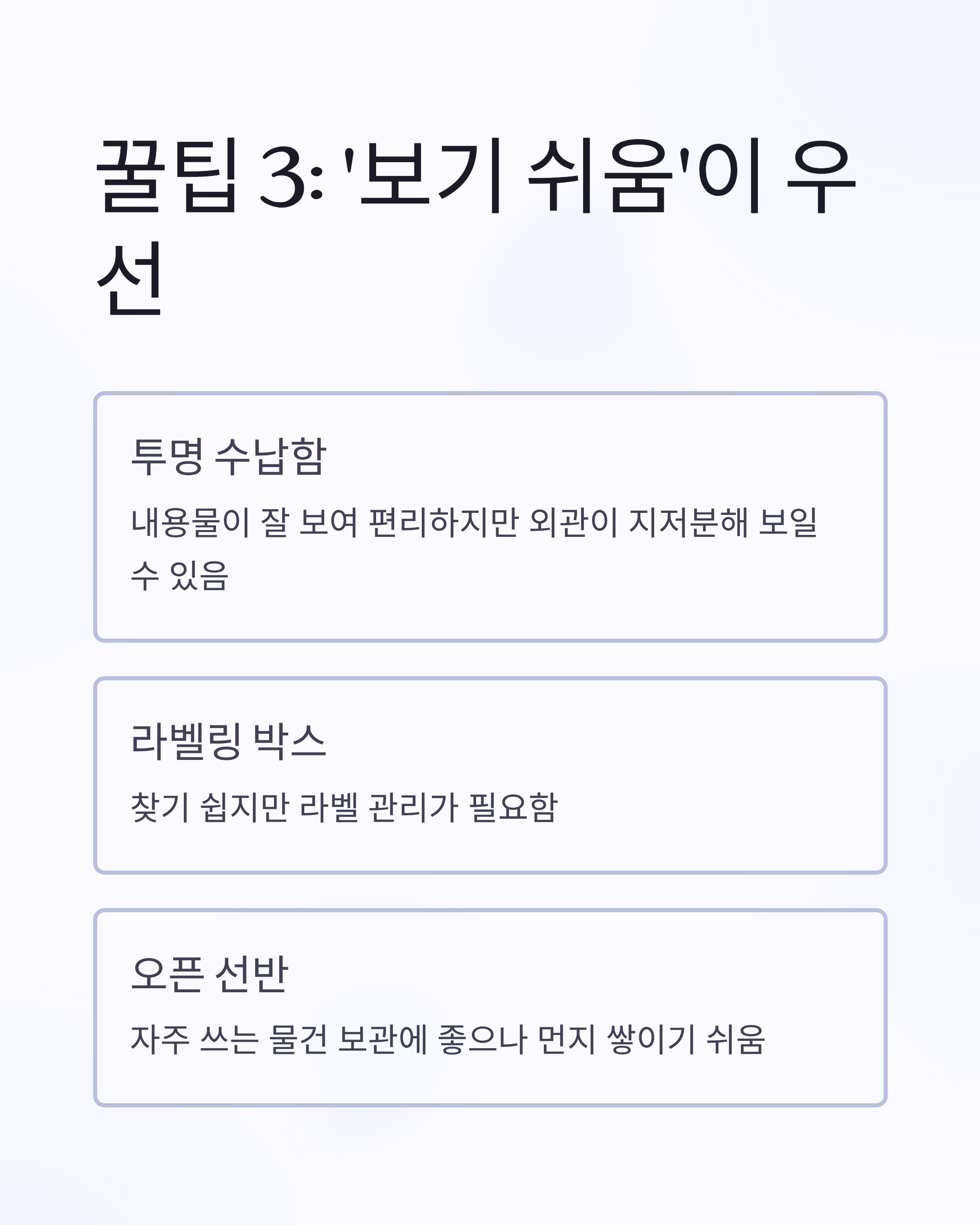 3. 수납 공간은 '보기 쉬움'이 우선입니다