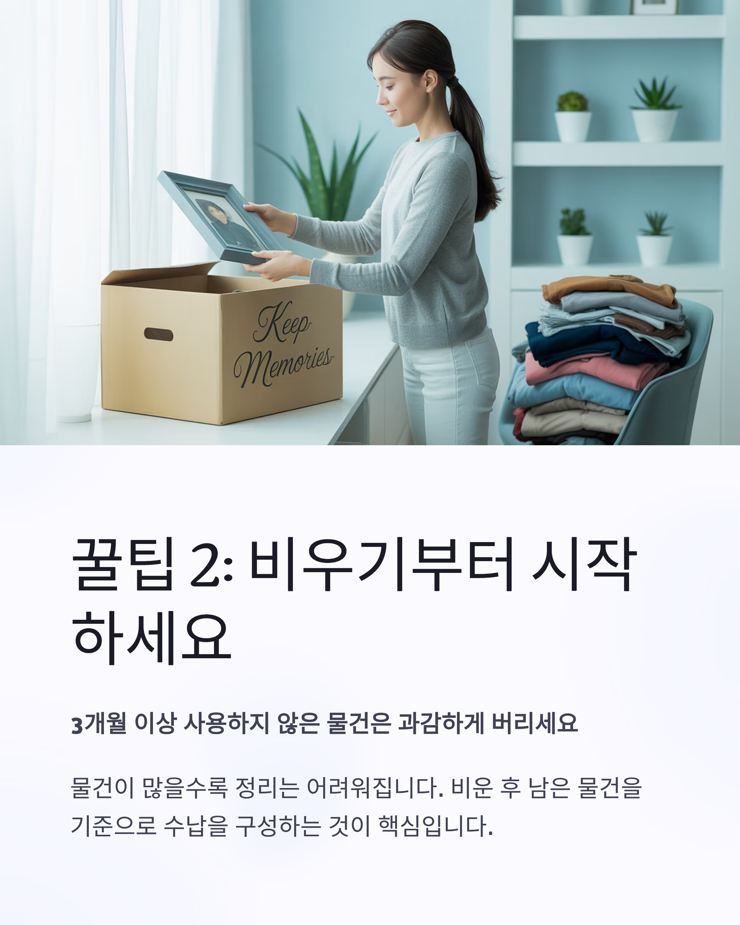 3개월 이상 사용하지 않은 물건은 과감하게 비워보세요.