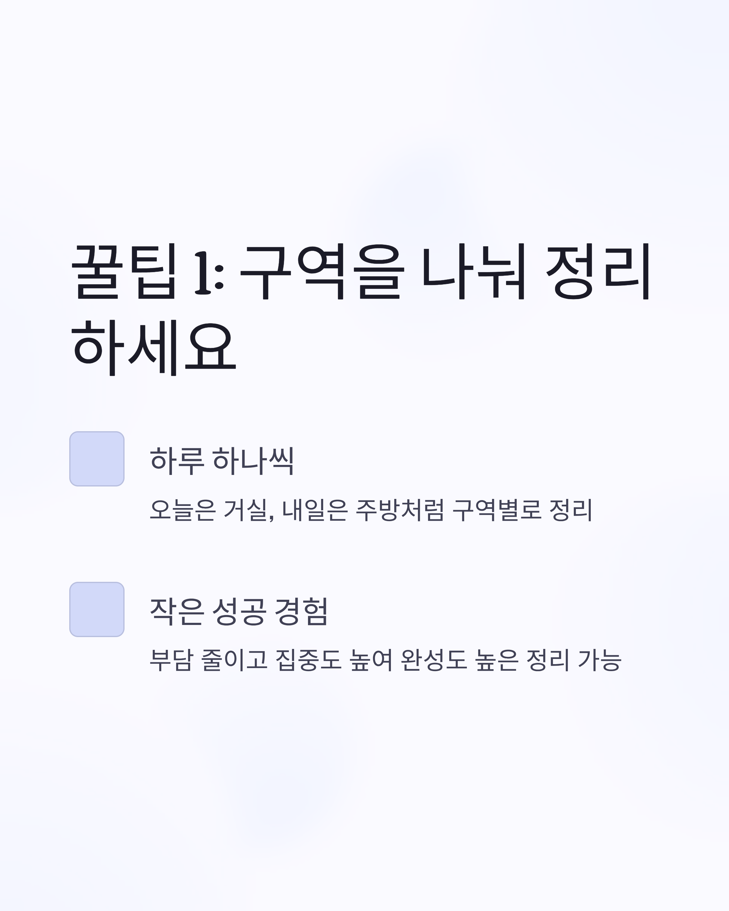 1. 한 번에 다 하려 하지 말고, 구역을 나눠 정리하세요