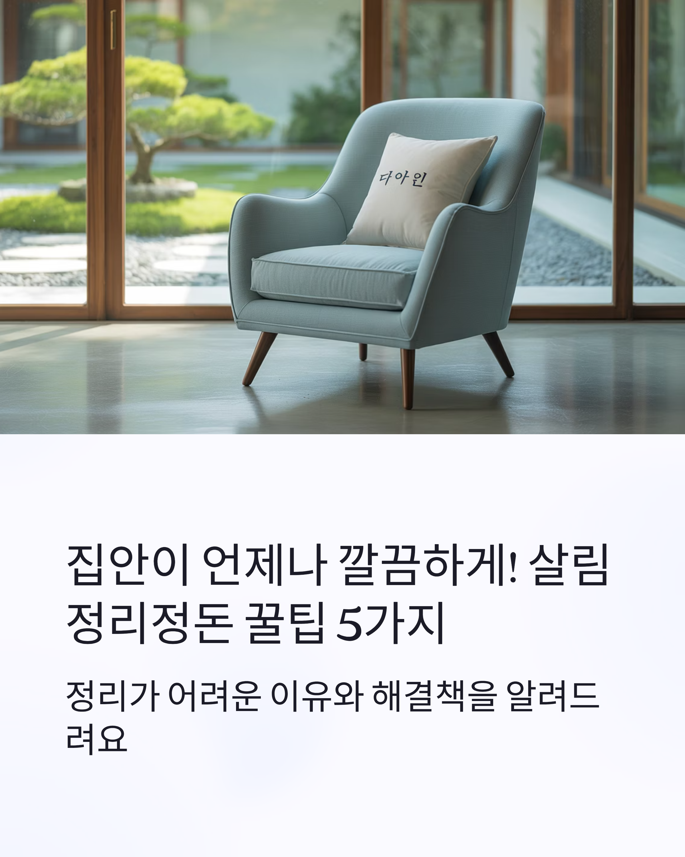 집안이 늘 어지럽고 정리가 어려운 이유는 공간과 물건의 관계를 제대로 이해하지 못했기 때문입니다. 이번 글에서는 살림을 더 간단하게 만들고, 정리정돈이 자연스러운 일상이 되도록 도와주는 꿀팁 5가지를 소개합니다. 실천만 하면 집이 매일 정돈된 것처럼 보이게 되는 정리 루틴, 지금 바로 시작해보세요!