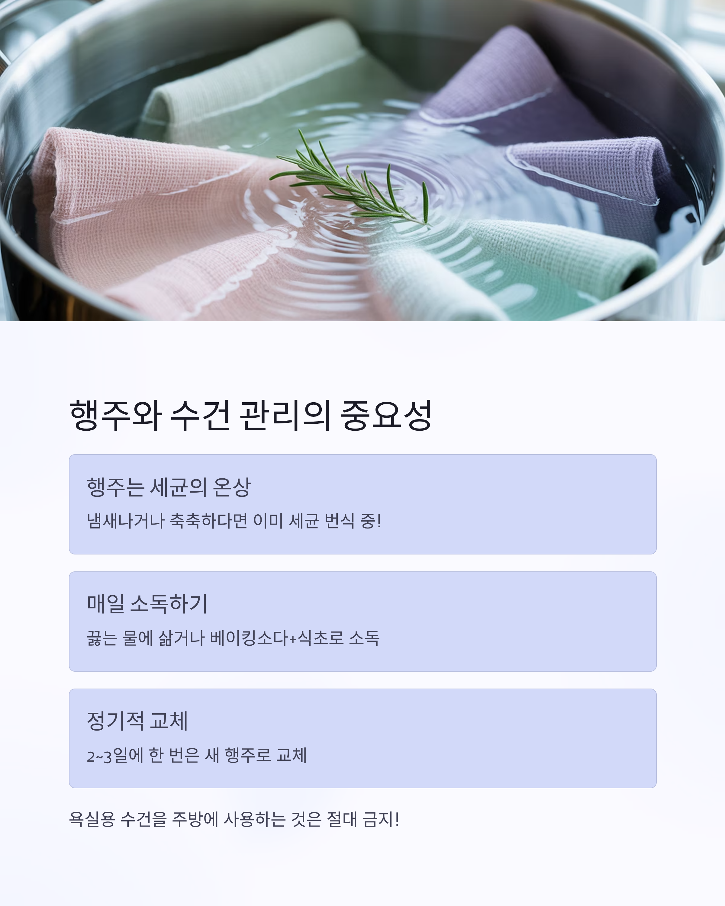 3. 행주는 매일 삶고, 수건은 주방용으로 따로
