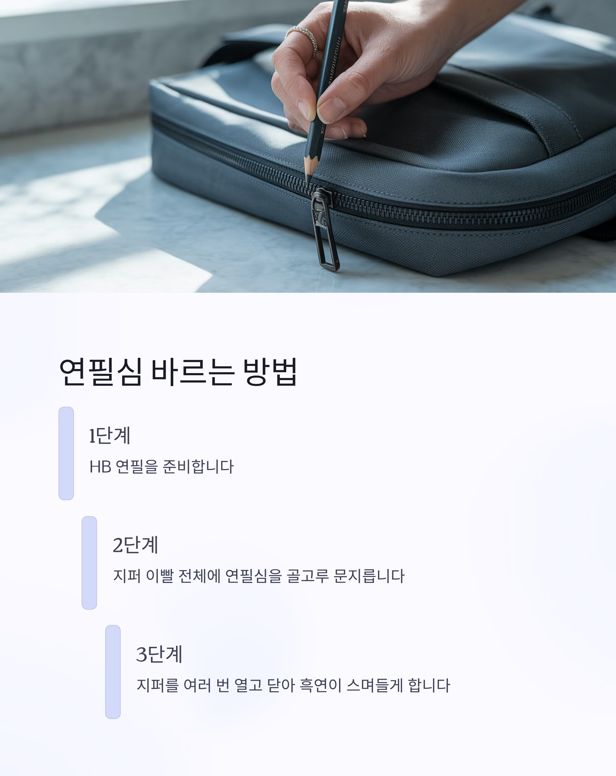 지퍼가 잘 안 열리거나 걸리는 일이 생기면 무척 불편합니다. 특히 가방이나 파우치처럼 자주 여닫는 물건이라면 더 스트레스를 받게 되죠. 인터넷에서 흔히 볼 수 있는 해결 방법 중 하나가 바로 연필심을 바르는 것인데요. 과연 이 방법이 실제로 효과가 있을지, 직접 실험해보고 느낀 솔직한 후기를 정리해보았습니다.