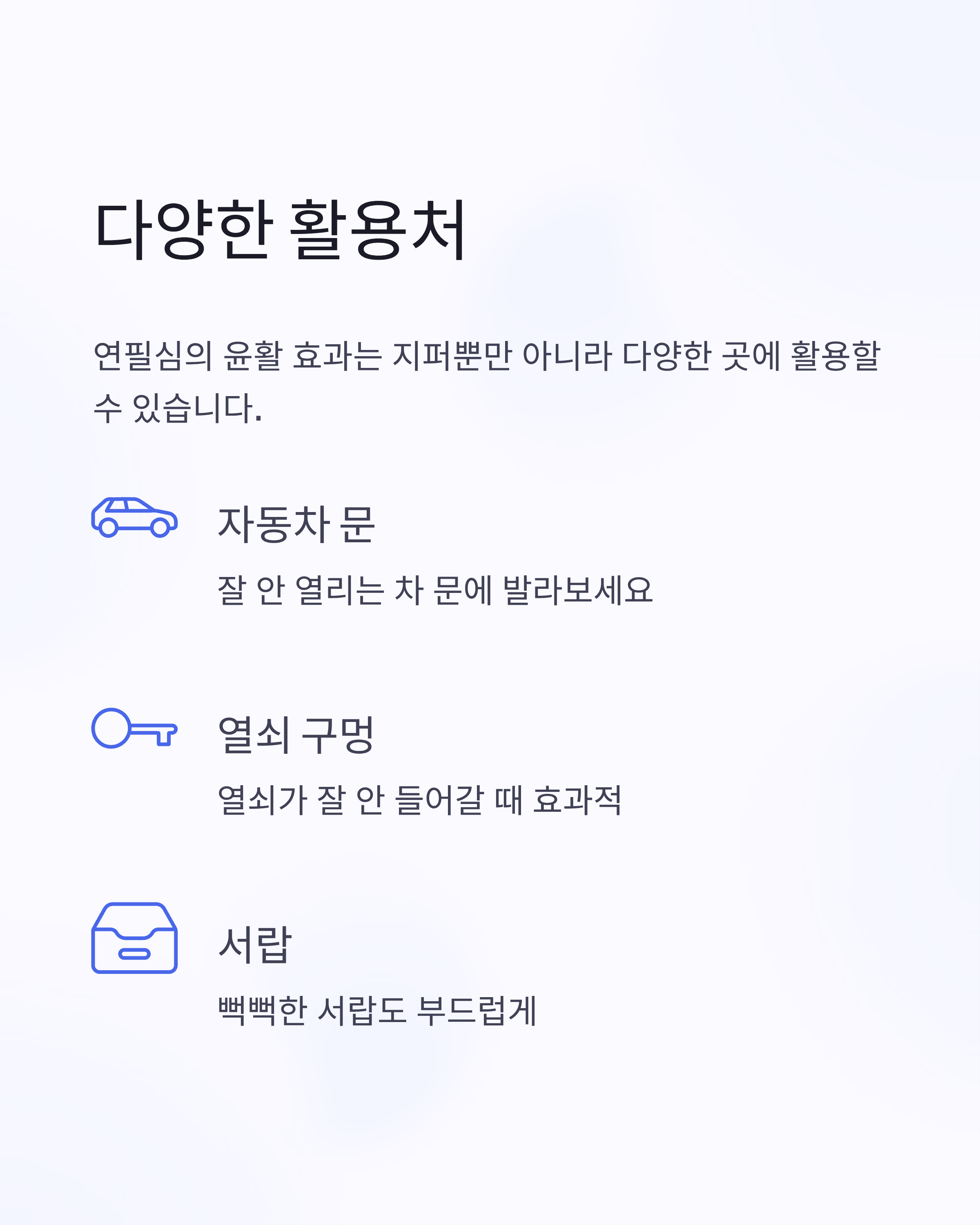 많이 알려져 있는데, 실제로 자동차 문이나 열쇠 구멍에도 쓰이곤 합니다.