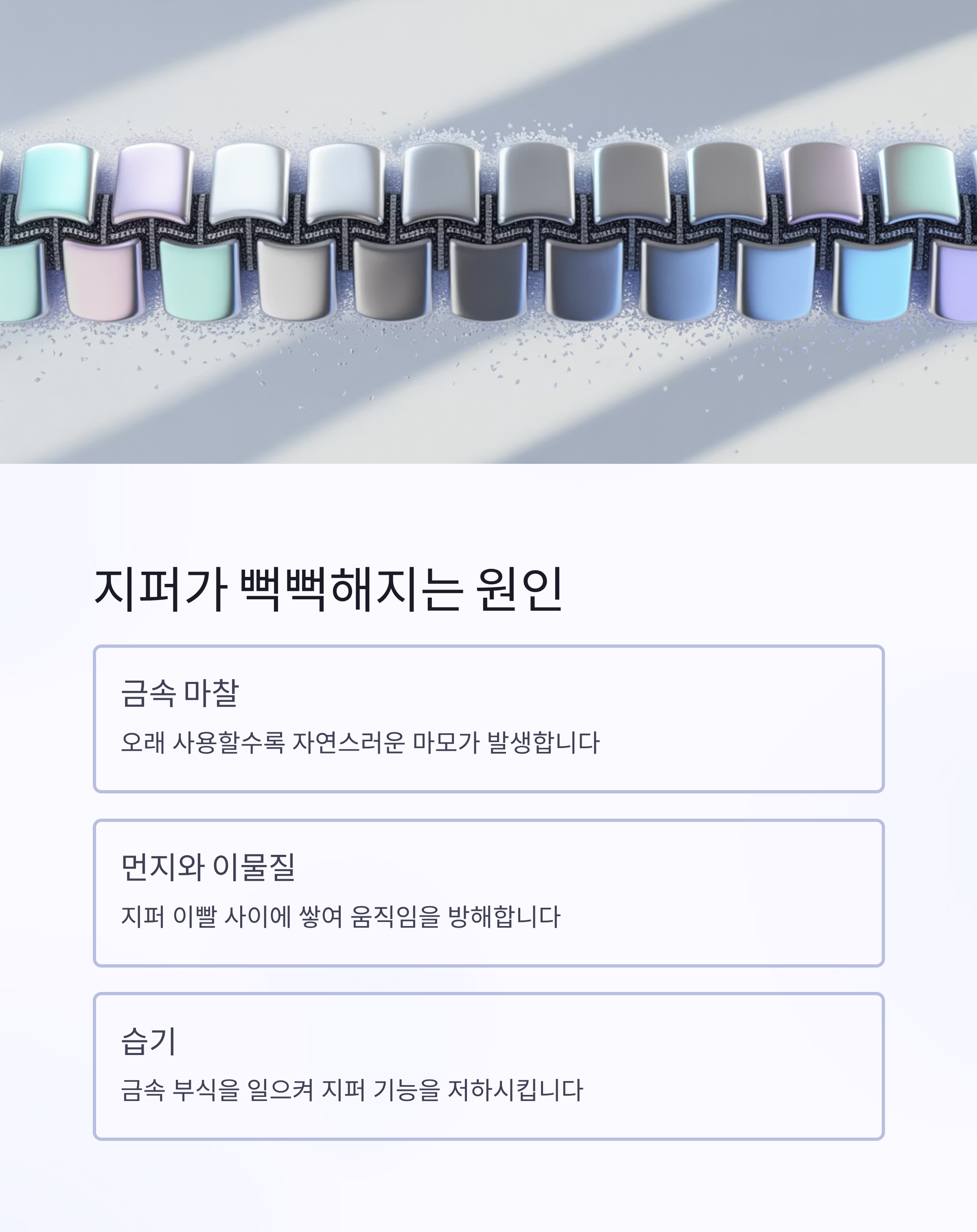 지퍼가 뻑뻑해진 원인부터 살펴보자