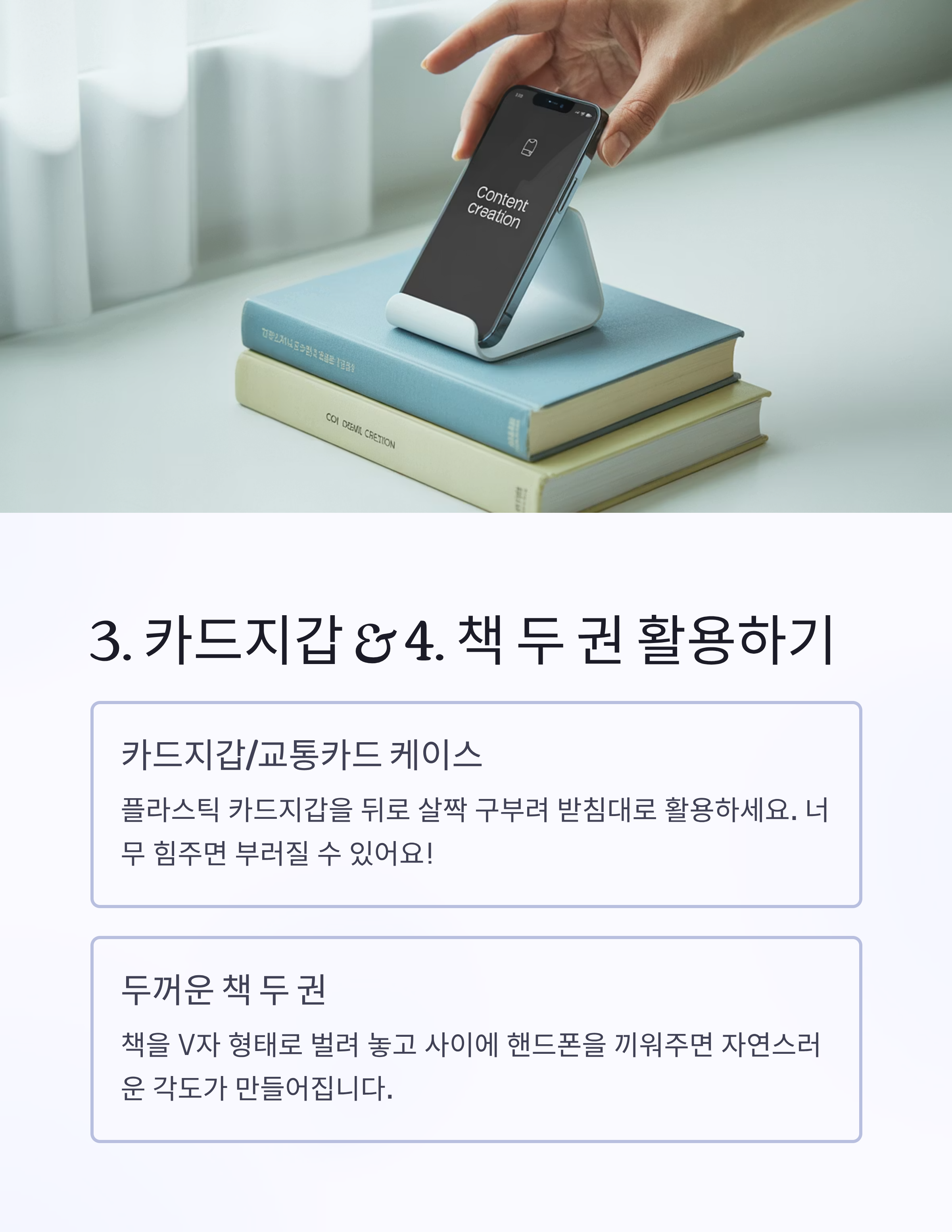이 글에서는 집, 회사, 야외에서도 활용 가능한 핸드폰 거치대 대체 아이템 7가지를