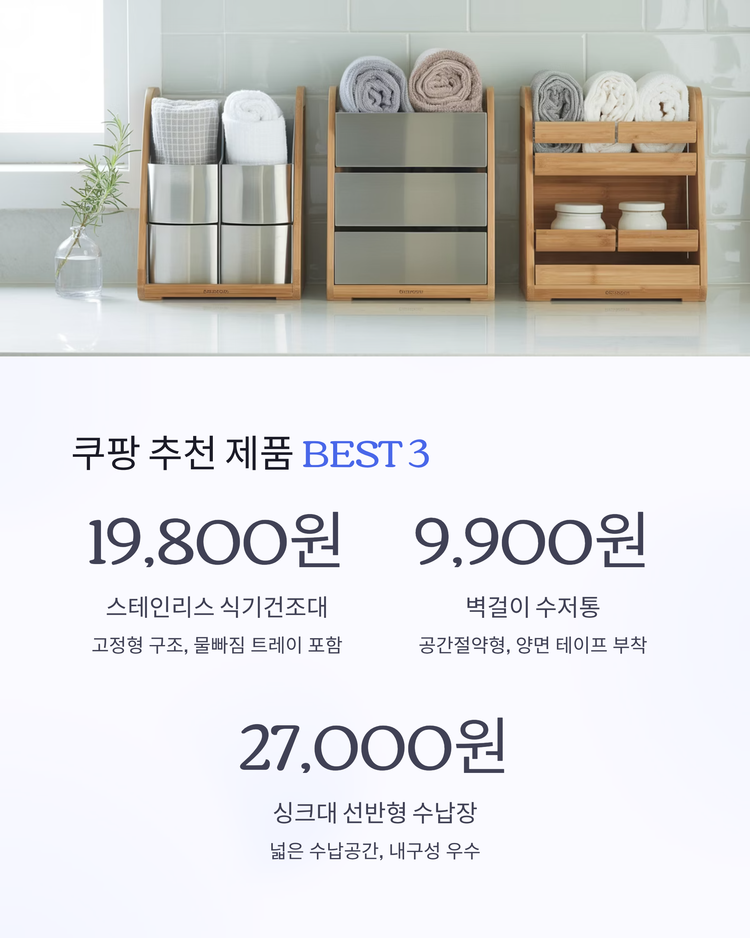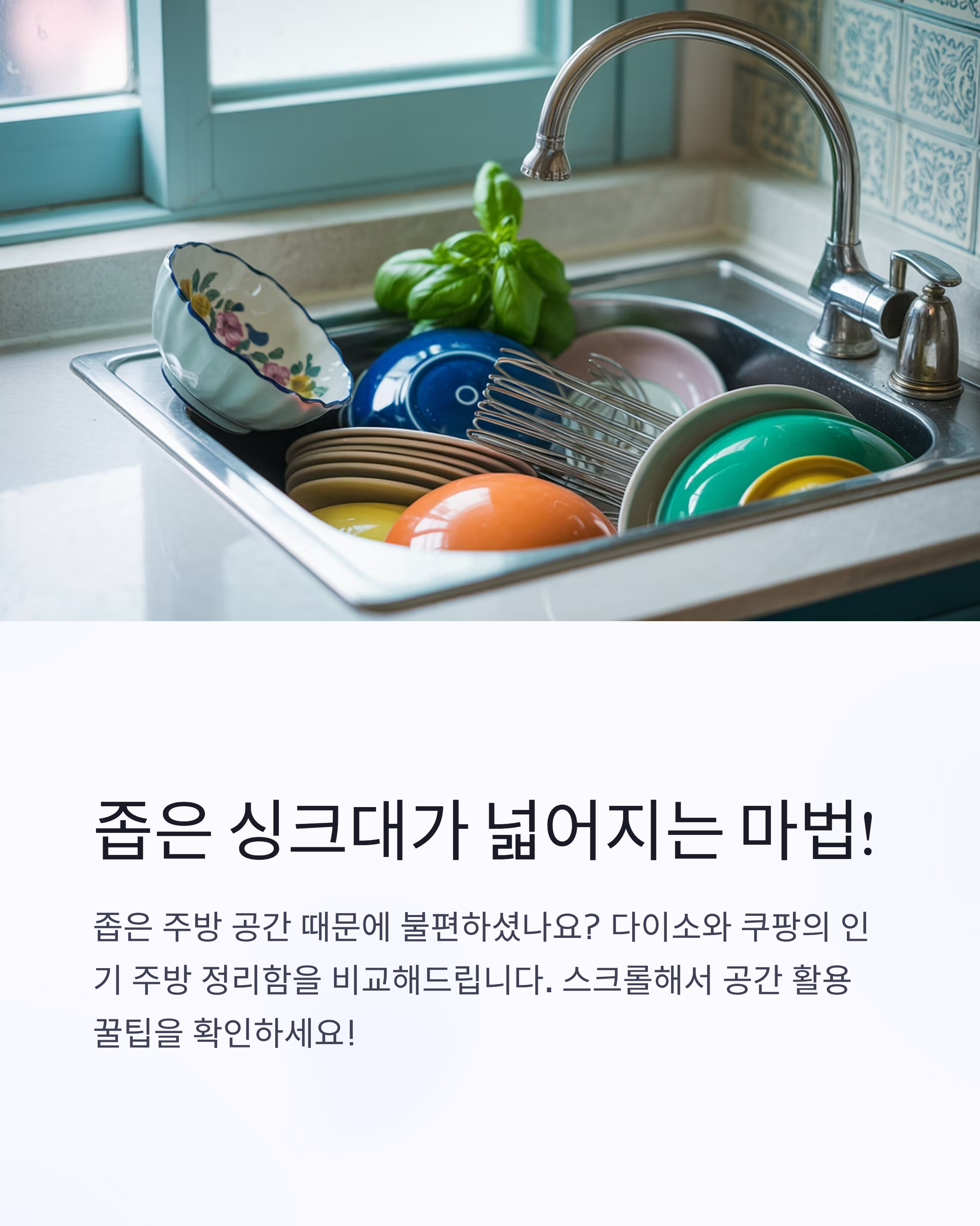 | 좁은 싱크대 넓어지는 마법! 다이소 vs 쿠팡 주방 정리함 비교 추천 (2) | 2025.08.25 |