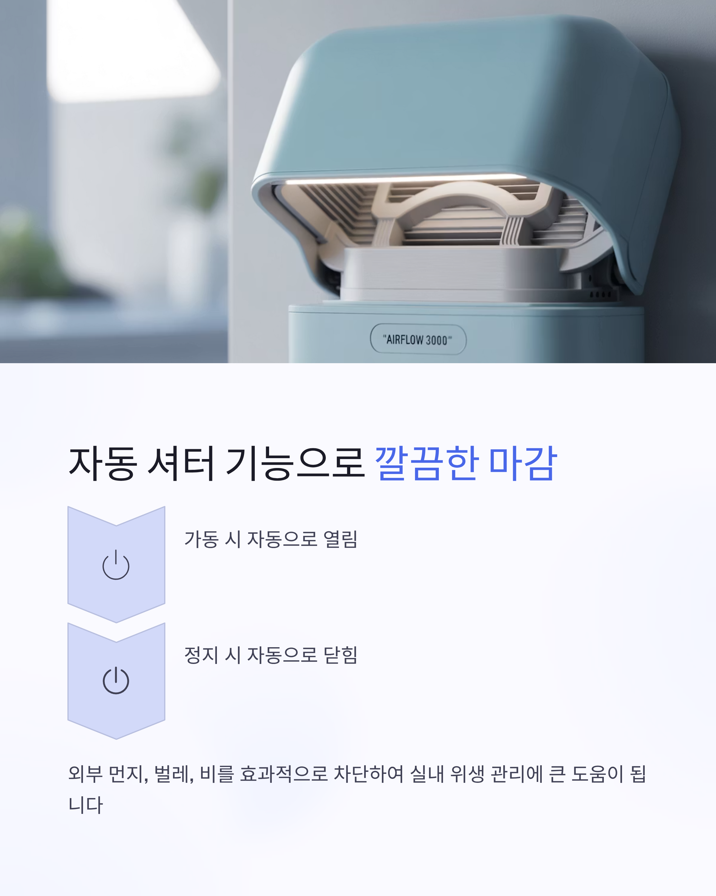 가동 시 자동으로 열리고, 정지 시 자동으로 닫히는 셔터 기능 덕분에