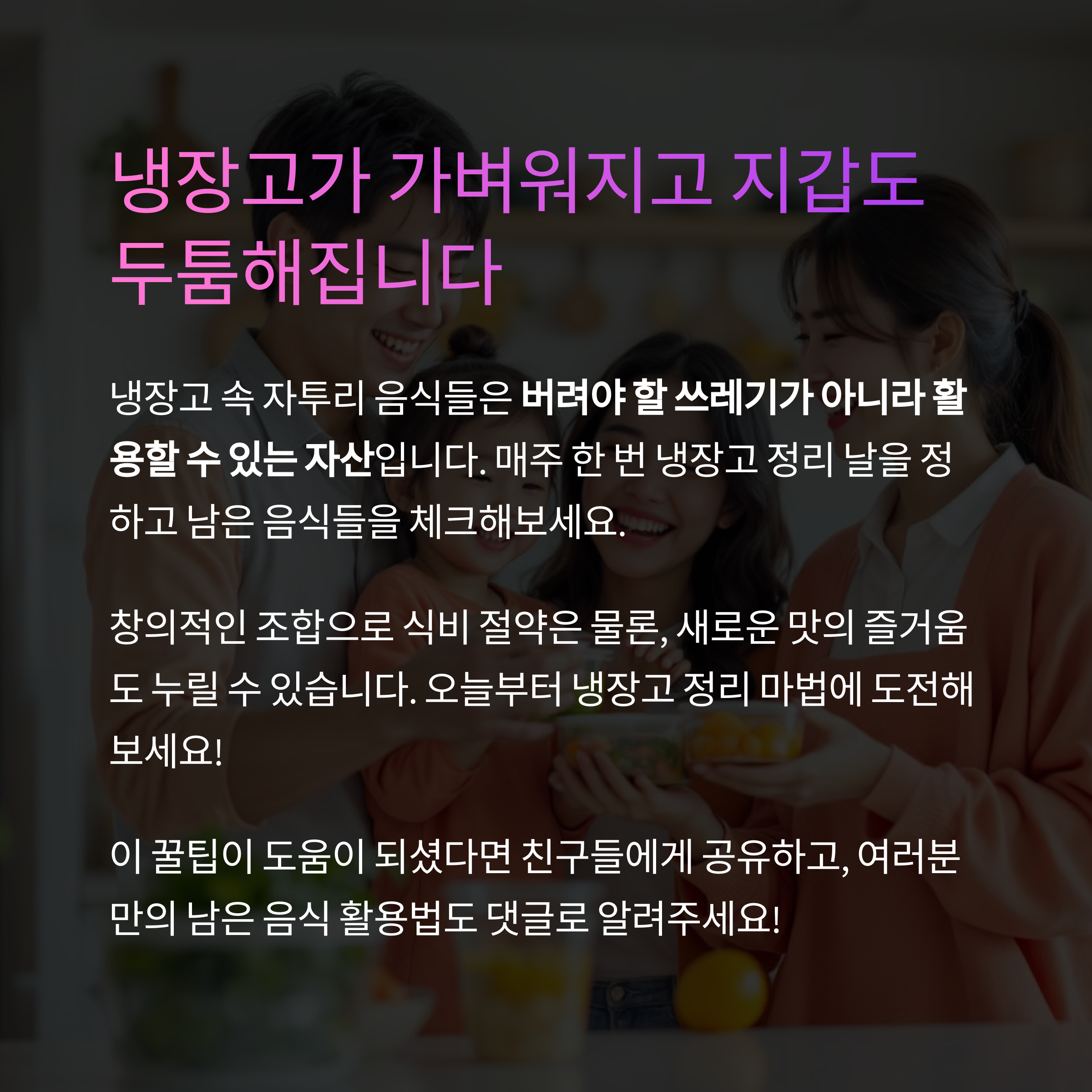 냉장고 속 보물찾기! 남은 음식으로 완성하는 알뜰 레시피 비법
