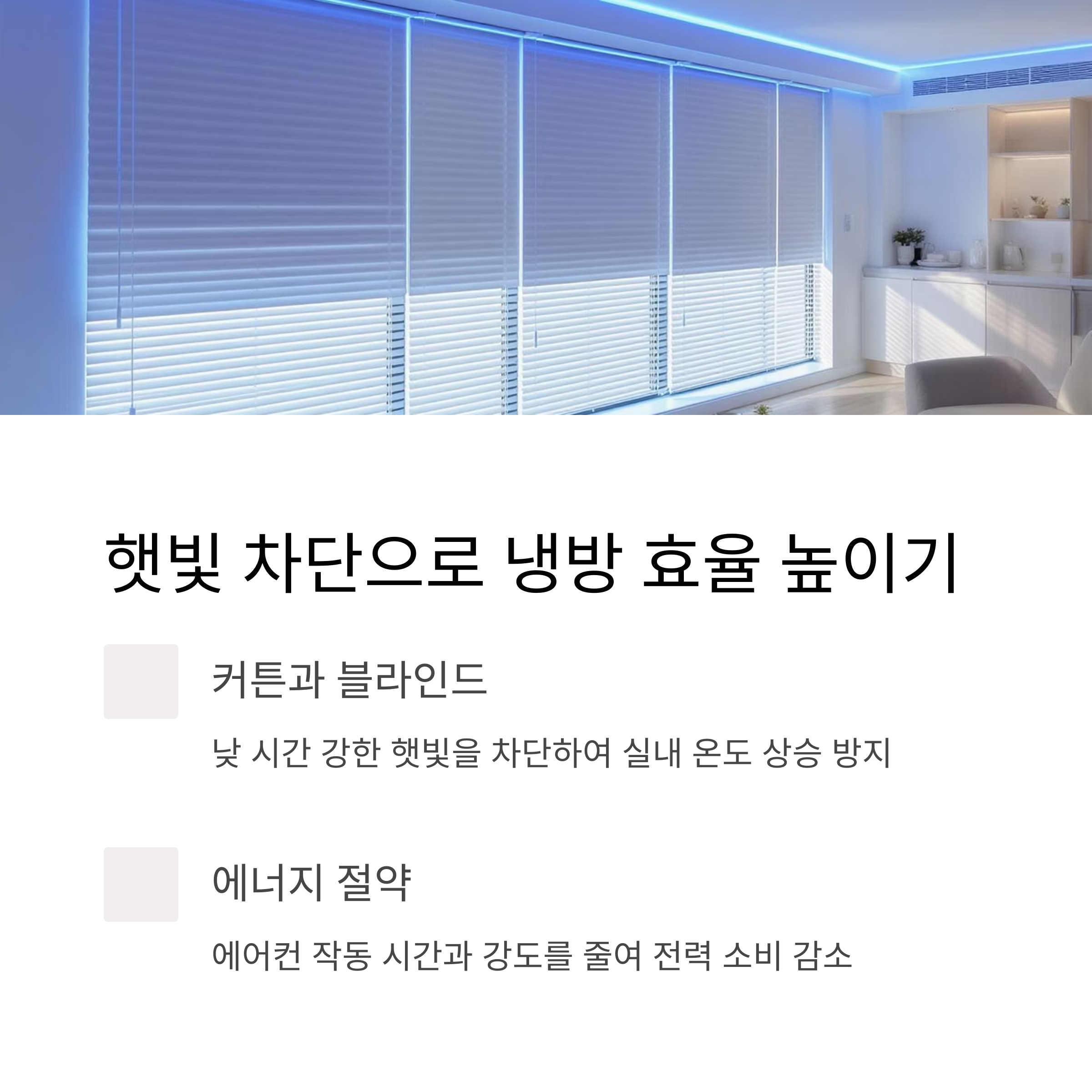 낮 동안 커튼이나 블라인드로 햇볕을 차단하면
