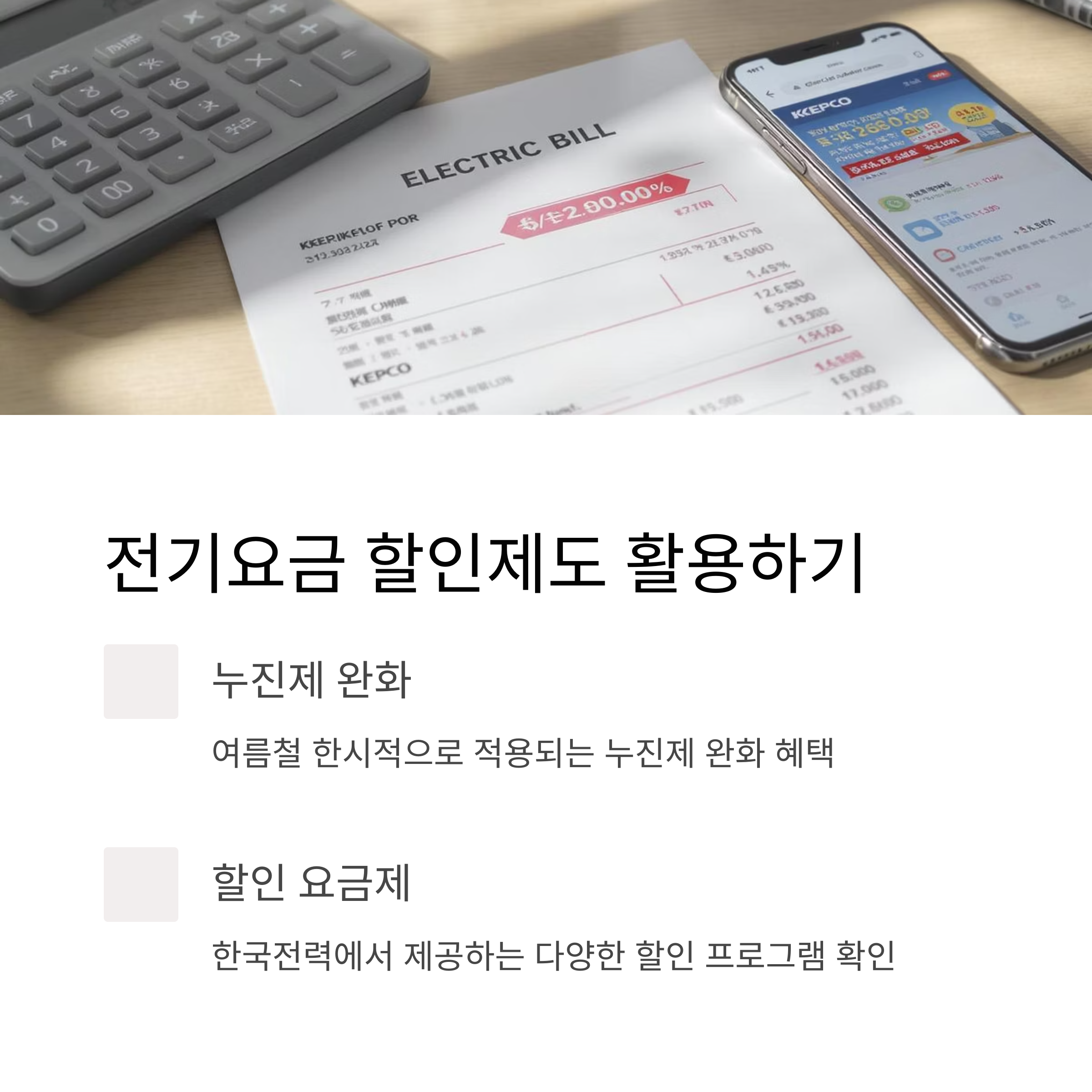 누진제 완화, 여름철 할인 요금제 등을 제공합니다.