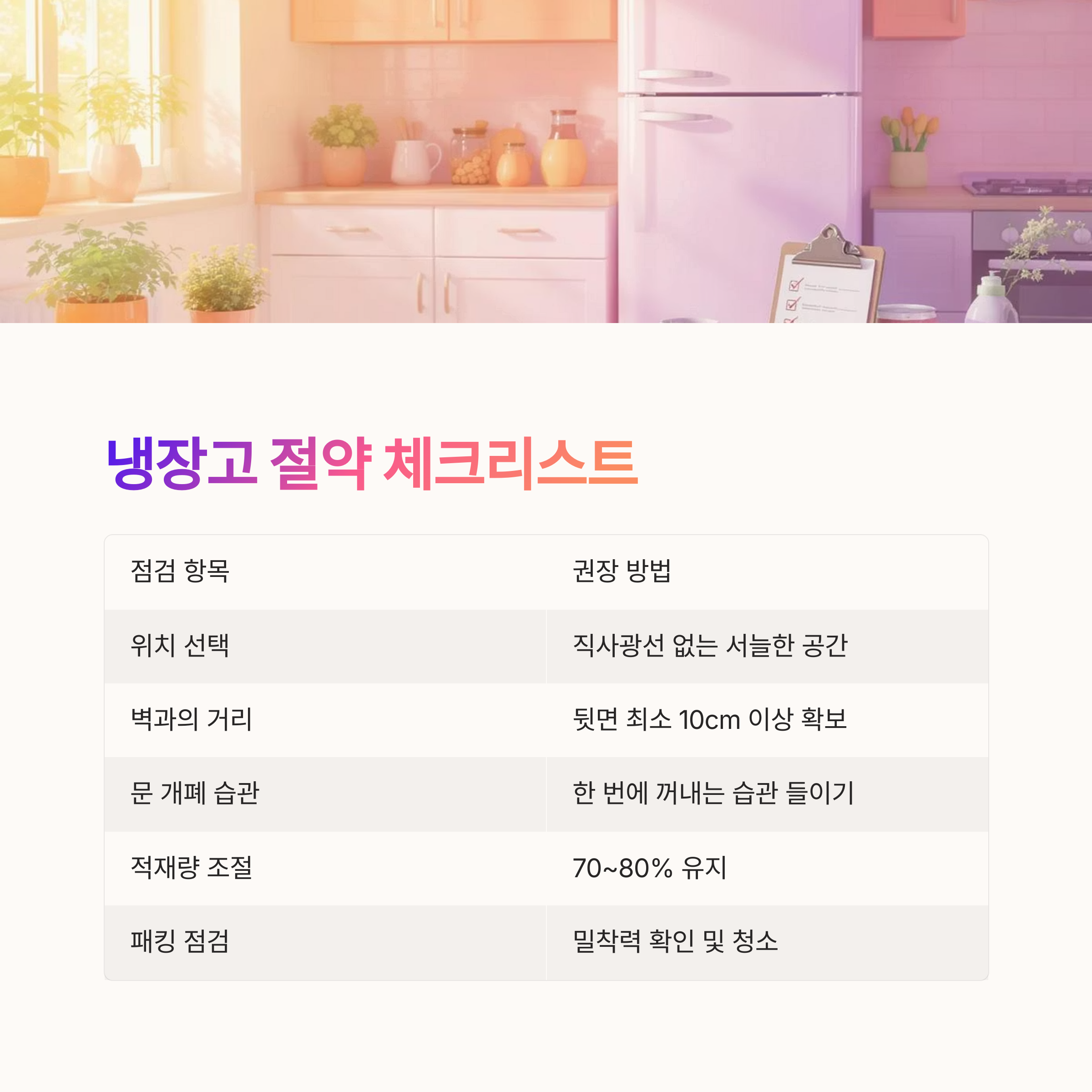 전기세 절약을 위한 냉장고 관리 체크표