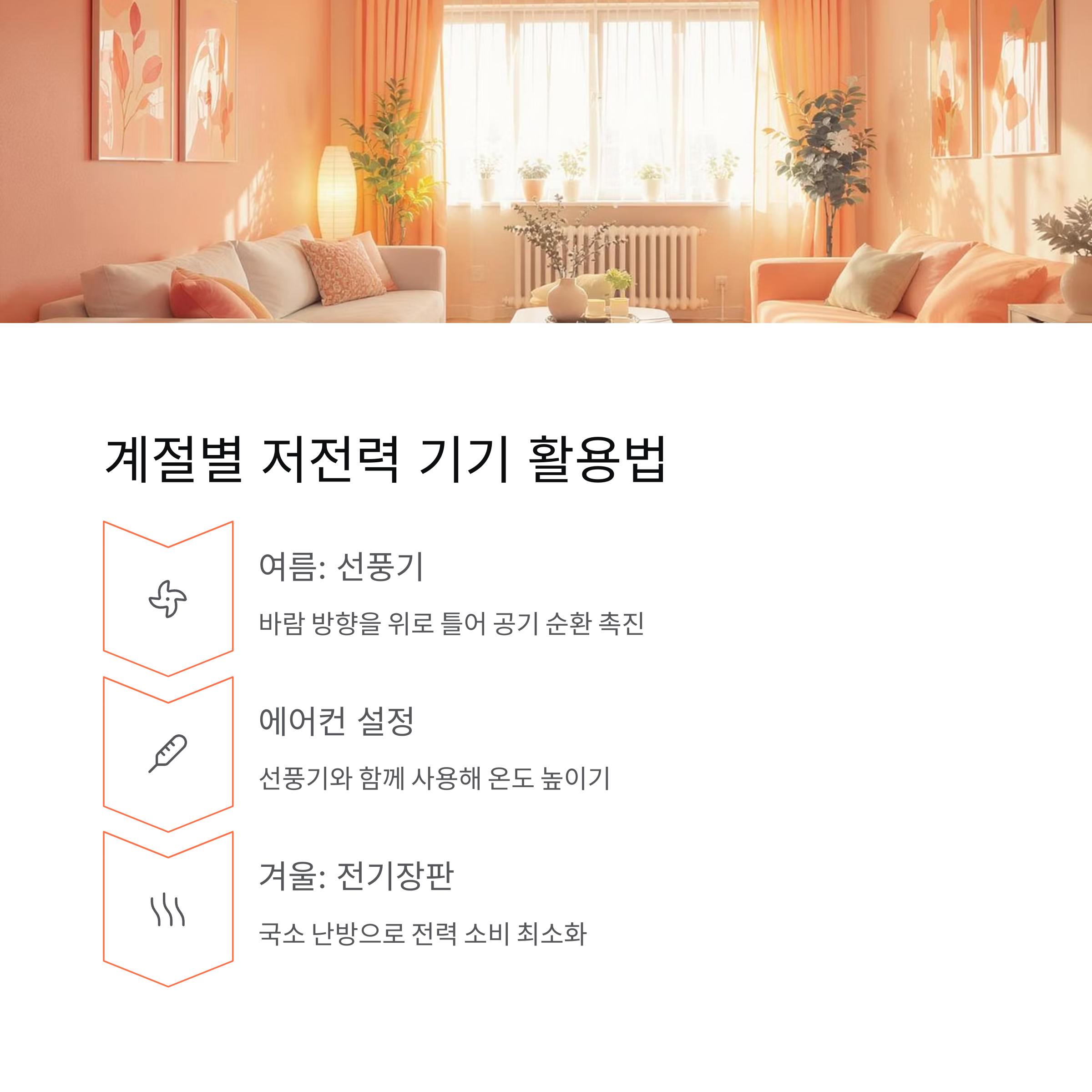 대신 선풍기나 전기장판 같은 저전력 기기를 적절히 활용해보세요.