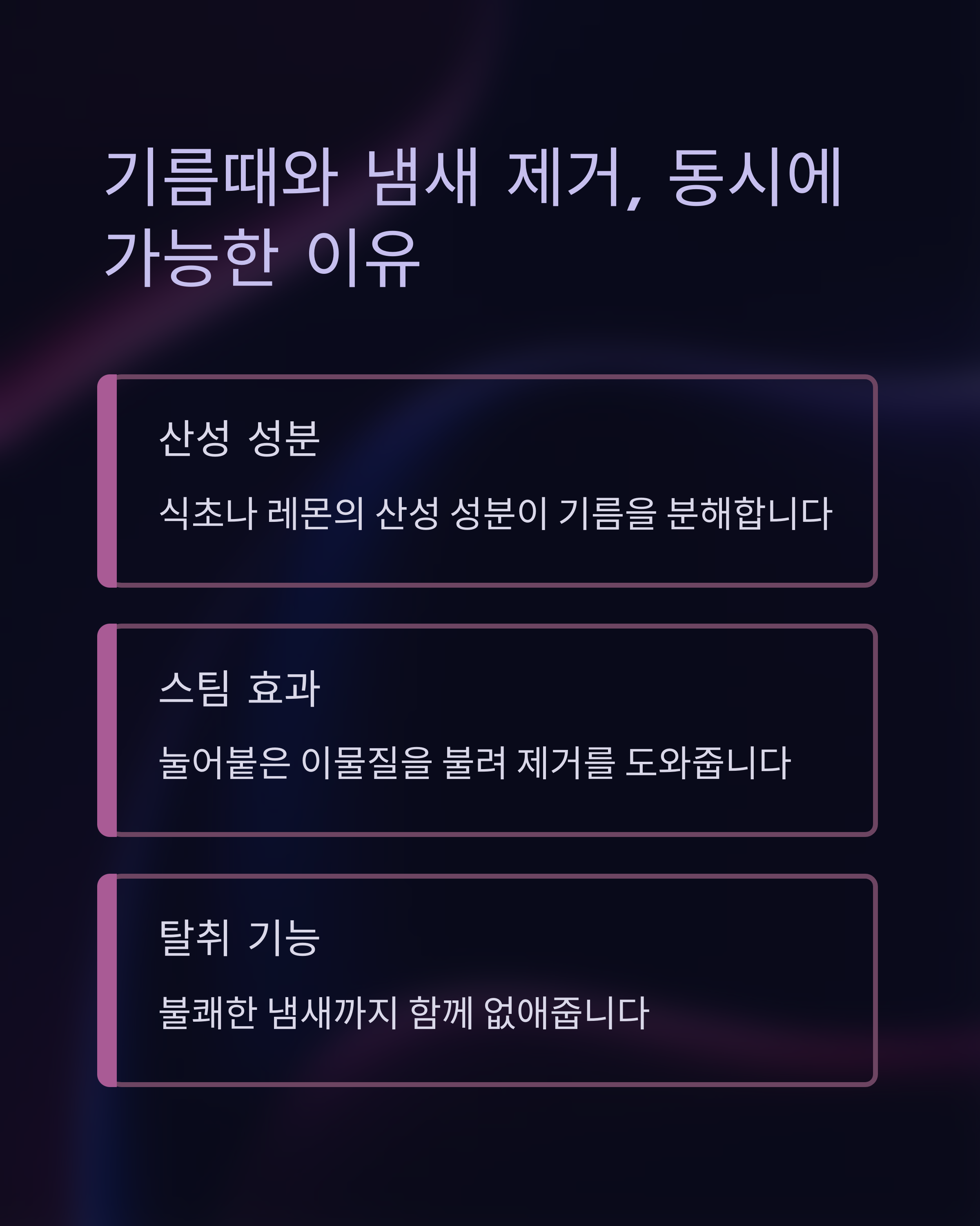기름때와 냄새 제거, 동시에 가능한 이유는?