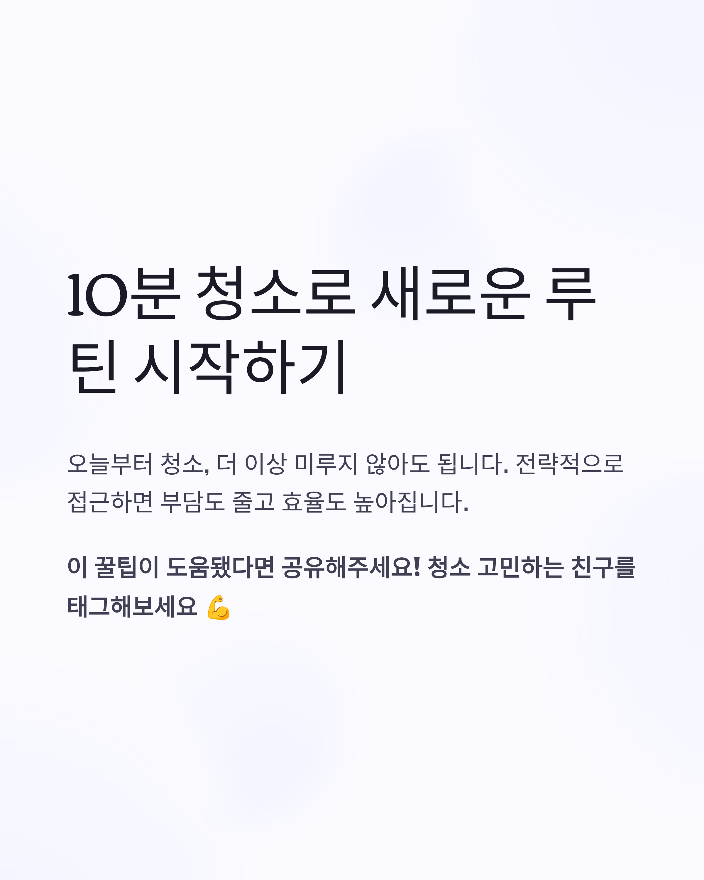 10분 습관이 들면, 주말 대청소도 필요 없어집니다.