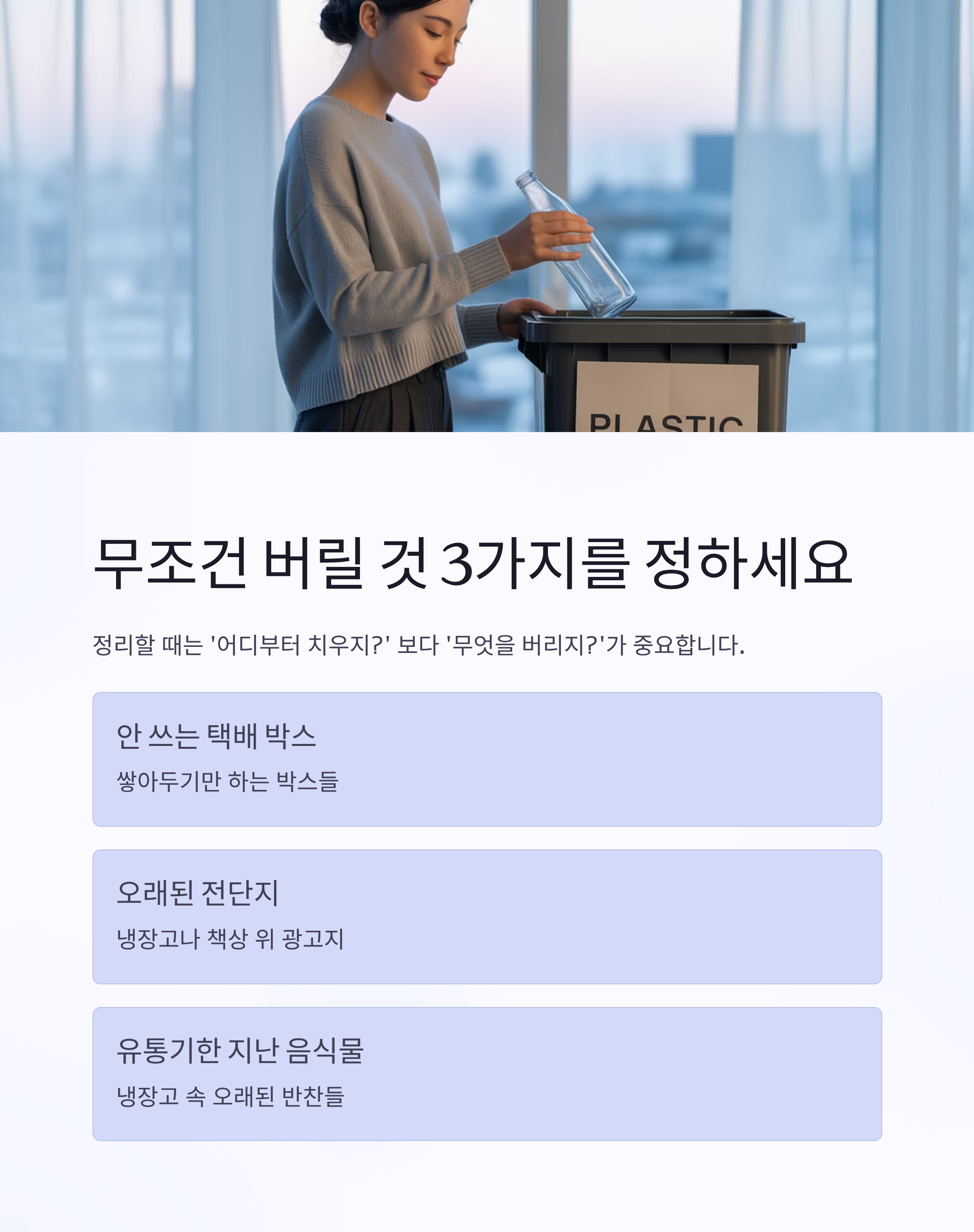 버릴 항목을 미리 정해두면 생각보다 훨씬 빠르게 정리됩니다.