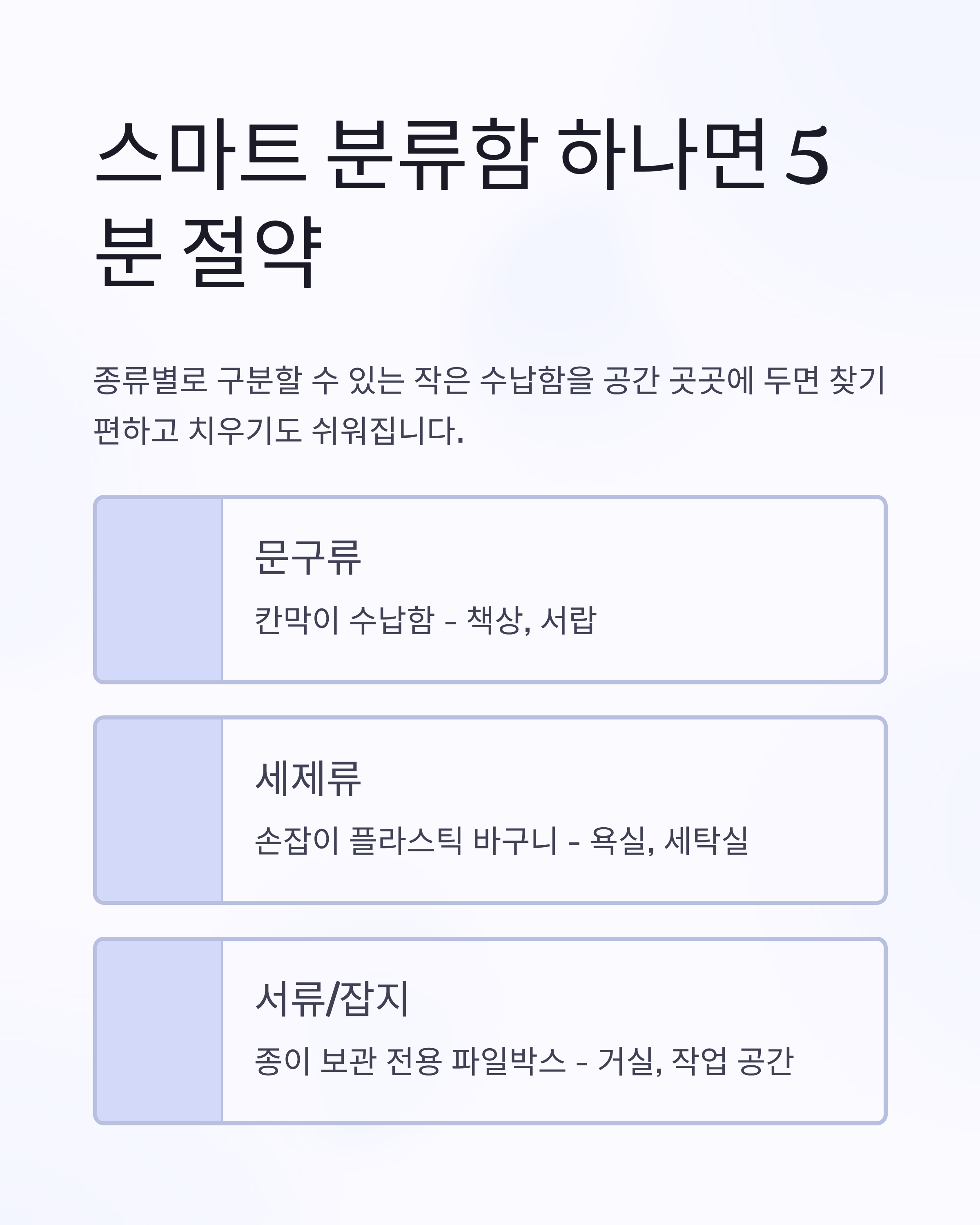 종류별로 구분할 수 있는 작은 수납함이나 박스를