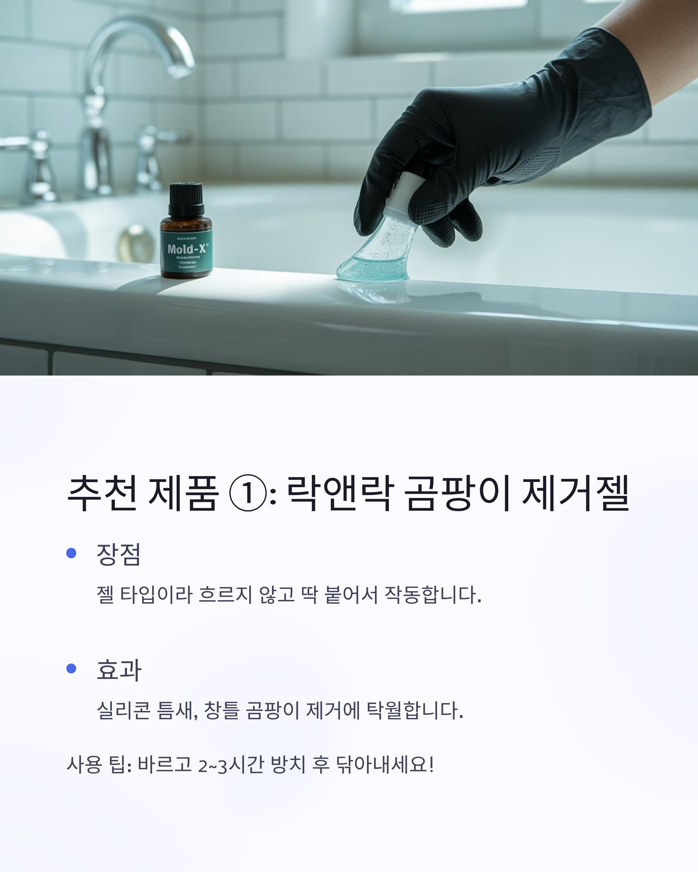 | 락앤락 곰팡이젤 | ⭐⭐⭐⭐⭐ | 있음 | 실리콘 틈, 창틀 |
