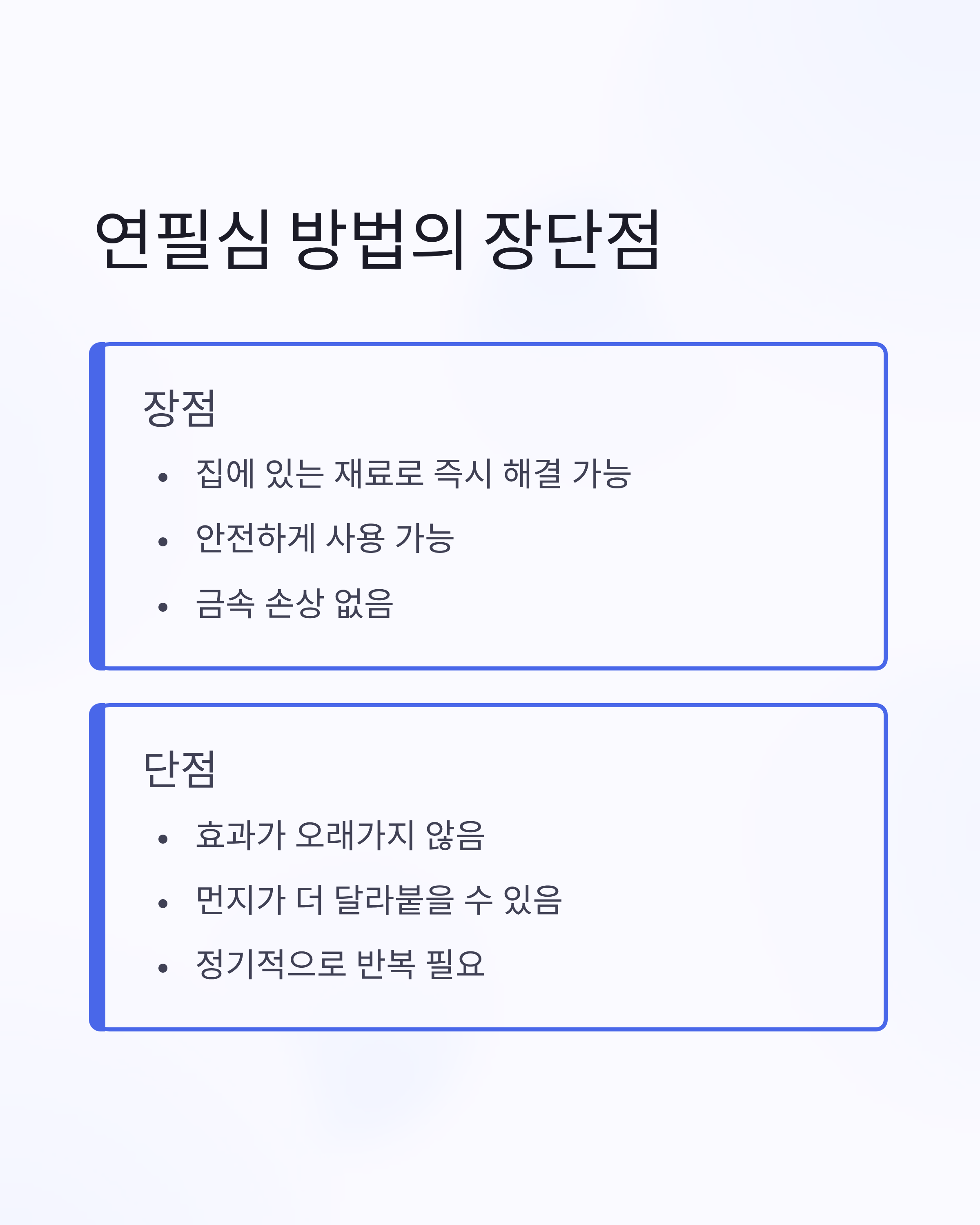 | 금속 손상 없이 가능 | 자주 반복해야 할 수 있음 |